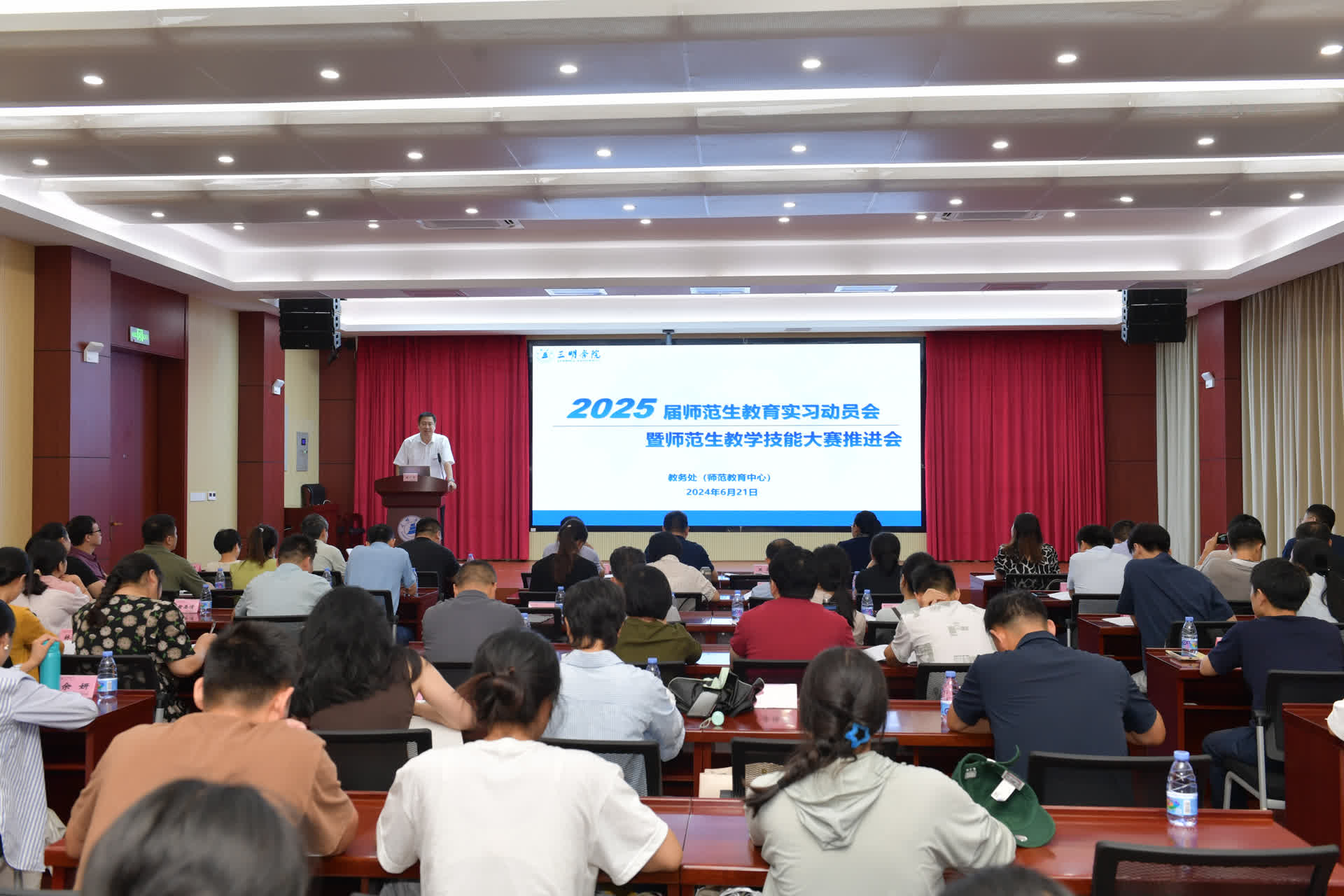6月21日下午,yl6809永利官网2025届师范生教育实习动员暨师范生教学技能大赛推进会在会议中心第三会议室召开。校党委委员、副校长吴龙,教务处,相关学院分管领导、系主任、指导教师、实习生及技能大赛备赛选手代表参加会议。