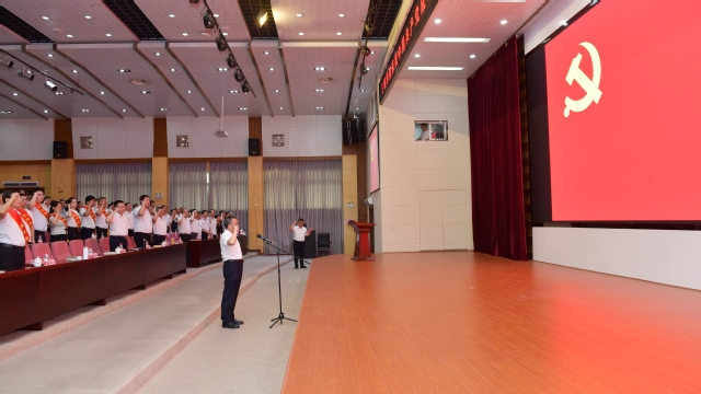 “我志愿加入中国共产党,拥护党的纲领,遵守党的章程……”,在校党委书记赖锦隆的带领下,全体党员高举右拳庄重宣誓。一句句铿锵有力的誓言,表达了师生党员干部为党和学校事业奋斗终生的责任担当,许下了对党忠诚、永不叛党的坚定承诺。