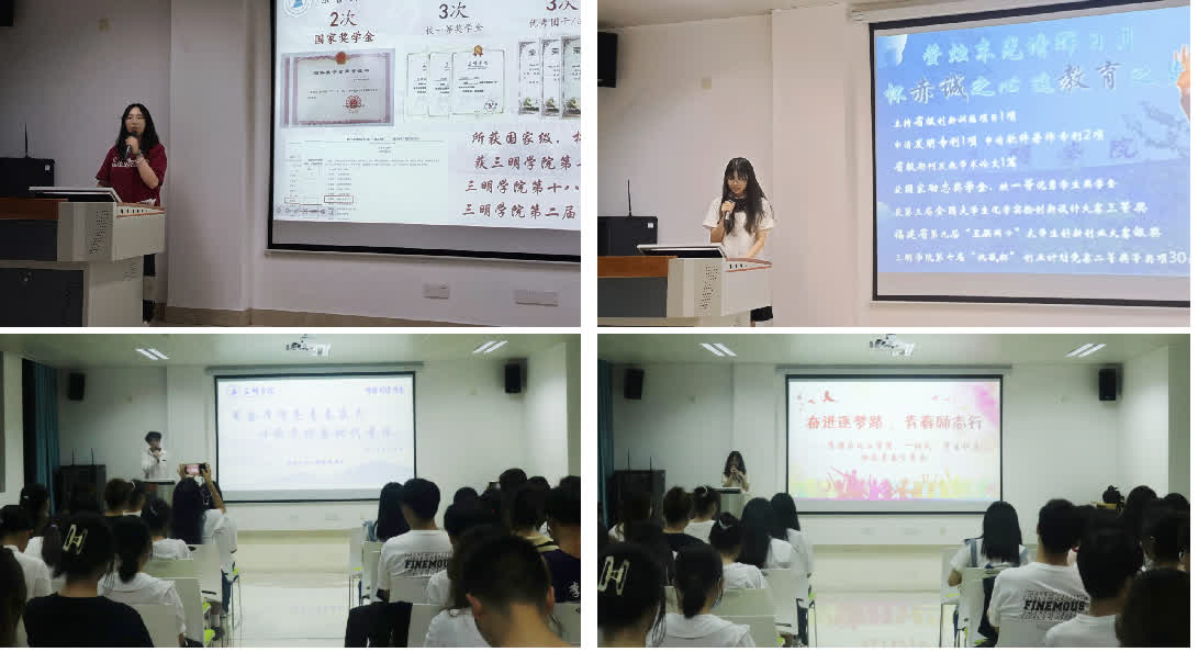 分享会伊始,现场播放了国家奖学金、国家励志奖学金获得者先进事迹的精彩视频。国家奖学金获得者邱婉玲同学分享了两次获得国家奖学金的心路历程、科研及科创竞赛等方面的经验,她希望学弟学妹们要培养自主学习和独立思考问题的能力,积极投身科研与社会实践,激发自我潜能。国家励志奖学金获得者王小英、四星级“劳动之星”周靖洋同学则结合自身经历,分别讲述自己励志成长的故事,参与劳动实践的心得体会。现场同学们表演了手势舞《夜空中最亮的星星》,国家励志奖学金获得者分别上台共同演唱励志歌曲《奔跑》,唱出青春最强音,将分享会推向高潮。