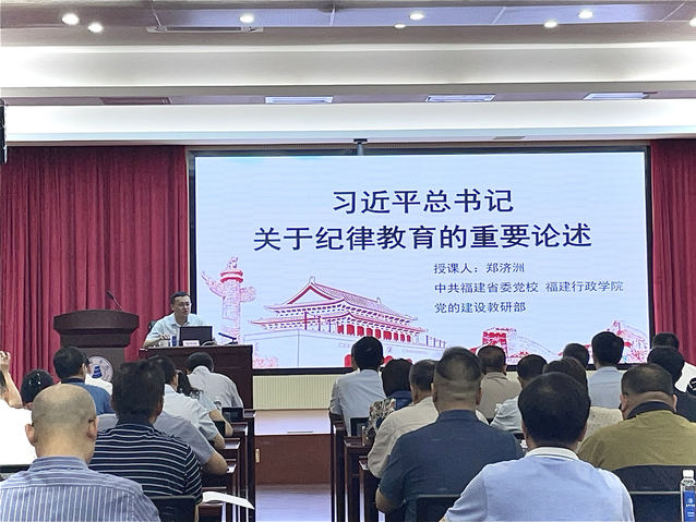 会上,邀请了省委党校(福建行政学院)党的建设教研部副教授郑济洲博士作题为《习近平总书记关于党纪教育的重要论述》专题辅导。通过对习近平总书记关于党纪教育重要论述的重要意义、核心内容、实践指导等方面的深入学习,教育引导党员干部深刻理解纪律建设的重要性,牢固树立正确的权力观、政绩观、事业观,形成遵规守纪的高度自觉。