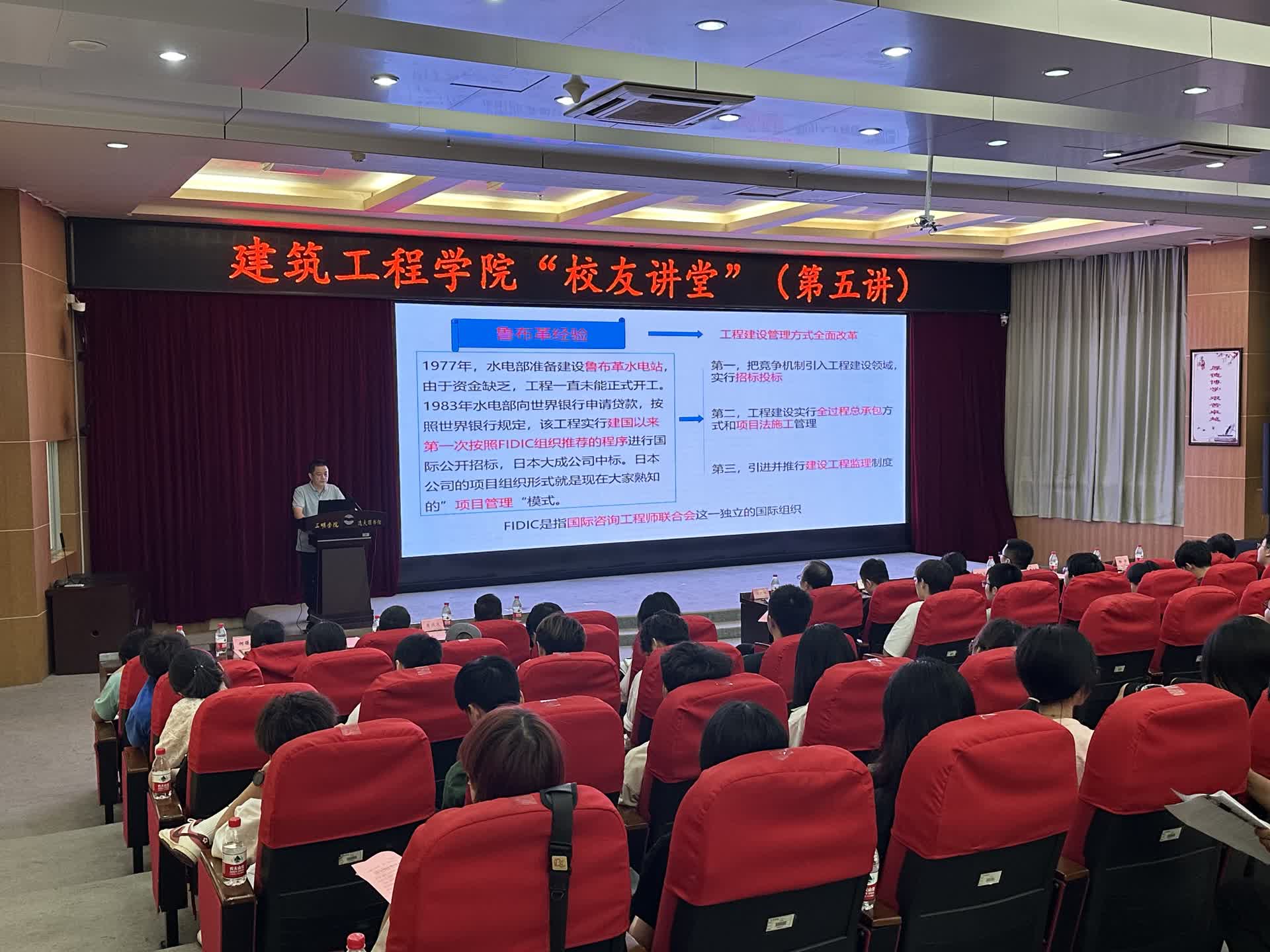 6月28日,建筑工程学院校友讲堂(第五讲)在图书馆报告厅举行。校统战部部长、校友会龚榕容秘书长,校友代表、学院领导、师生代表参加了活动,讲堂由曾武华副院长(主持工作)主持。