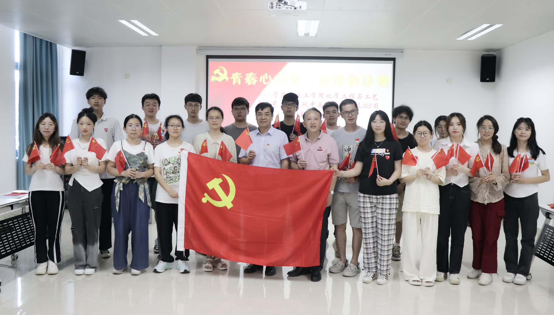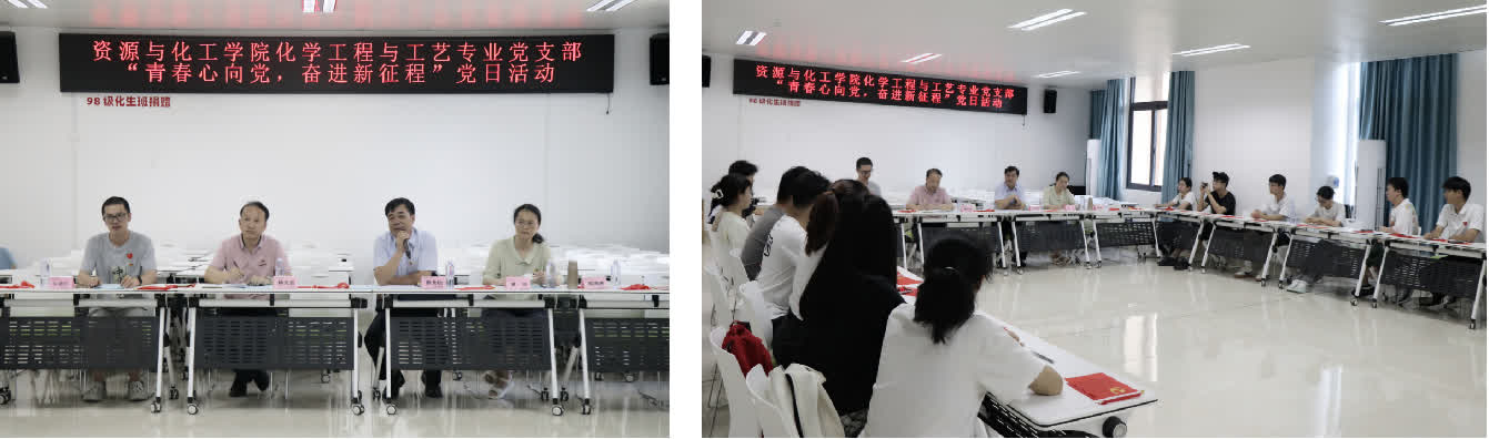 “再唱山歌给党听,我把歌儿献给你……”,7月5日下午工科楼传来动听的歌声,资源与化工学院化学工程与工艺专业学生党支部开展了以“青春心向党,奋进新征程”为主题的党日活动,校纪委书记游龙桂、学院党委书记赖文忠教授、院党委曾玲副书记以及支部师生党员参加。