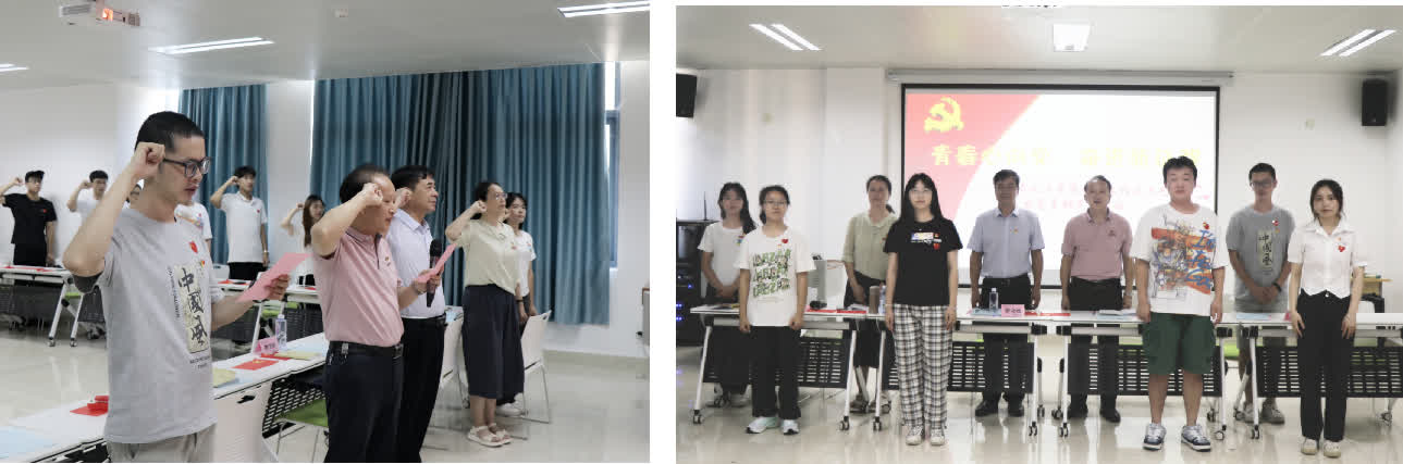 砥砺初心,奋楫笃行。在学院赖书记带领下,全体师生党员重温入党誓词。现场领导老师为新发展党员佩戴党徽,引导学生党员时刻牢记党员身份,保持党员本色。