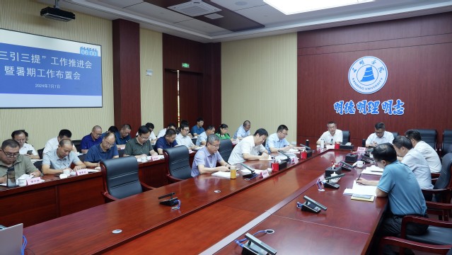 7月7日下午,yl6809永利官网“三引三提”工作推进会暨暑期工作部署会在学术会议中心召开。全体校领导,二级学院党政负责人、机关教辅部门负责人参加会议。