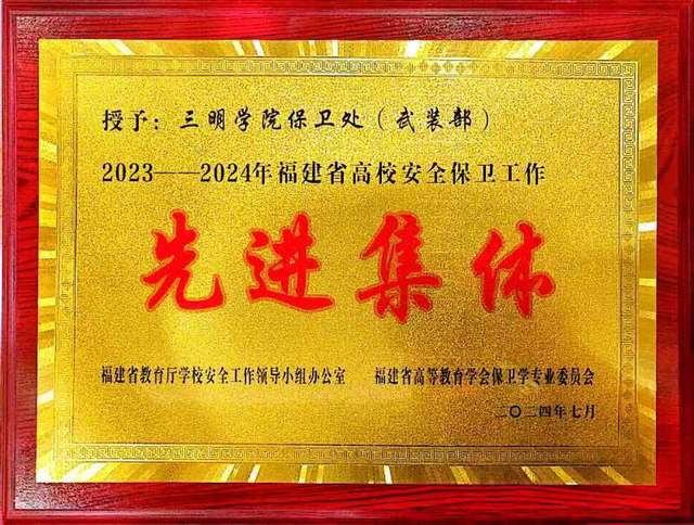 福建省高等教育学会保卫专业委员会主办的2024年学术年会7月11日在莆田学院召开。 本次会议以“夯实校园安全稳定基础,保障高教事业高质量发展”为主题,大会邀请了省教育厅、省公安厅、中国高教保卫学会和省内外安全管理专家开展学术交流;对福建省2023-2024年高校安全保卫工作先进集体和先进个人进行了表彰,我校荣获先进集体,两位同志荣获先进个人。