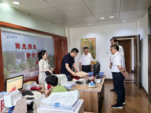 7月16日上午,校党委书记赖锦隆、校长张君诚、副校长吴龙到招生办现场指导2024年本科招生录取工作。