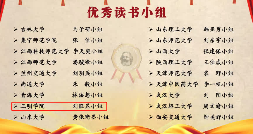 7月25日,中国高等教育协会马克思主义研究分会(“马研会”)2023年度“马克思主义经典著作研读”资助计划结项总结大会在线上落下帷幕,yl6809永利官网马克思主义学院刘旺昆读书小组荣获“优秀读书小组”表彰。