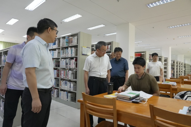 “暑期留校参加了什么比赛?”“有定期和家人联系吗?”“学习和生活上还需要学校提供什么帮助吗?”……每到一处,校领导与同学们亲切交谈,关心关注同学们学习和生活情况,叮嘱同学们要合理安排假期时间,注意劳逸结合,保持身心健康。同时,详细了解暑期各项服务保障工作,要求学生处、后勤处、图书馆等单位要进一步加强留校学生服务管理、水电和餐饮保障;进一步优化图书馆自习空间设置,提供舒适学习环境等,切实让留校学生学习和生活方面安心、放心、舒心。