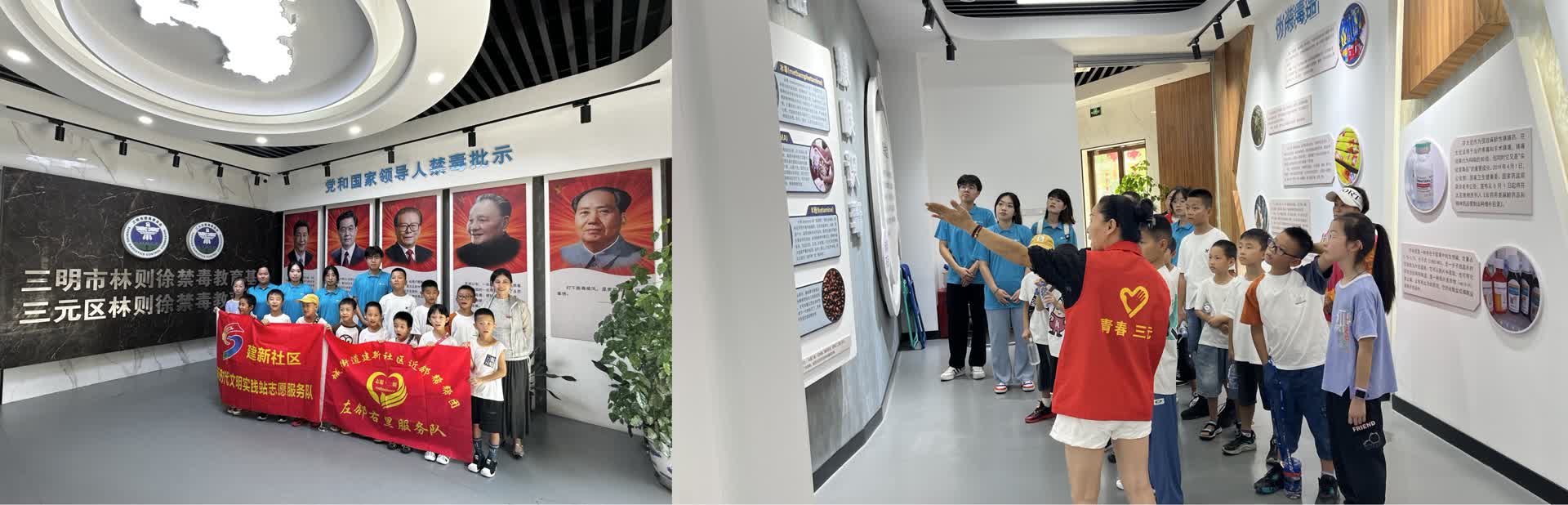 8月8日下午,实践队与三元区建新社区的10名中小学生一同前往林则徐禁毒教育基地。参观过程中,禁毒基地工作人员通过文字、图片、实物模型以及真实案例向师生进行了解说,生动直观地将毒品的危害一一展现在参观者面前,使每位参观的实践队成员与同学们清晰深刻地了解到毒品的本质、毒品的种类、制作过程、吸毒危害及如何辨别毒品等相关知识。此次参观禁毒教育基地与聆听禁毒知识讲解,加深了现场师生与实践队队员们对禁绝毒品形势和毒品危害的认识,进一步增强了拒毒、防毒意识,提高了抵御毒品的能力。