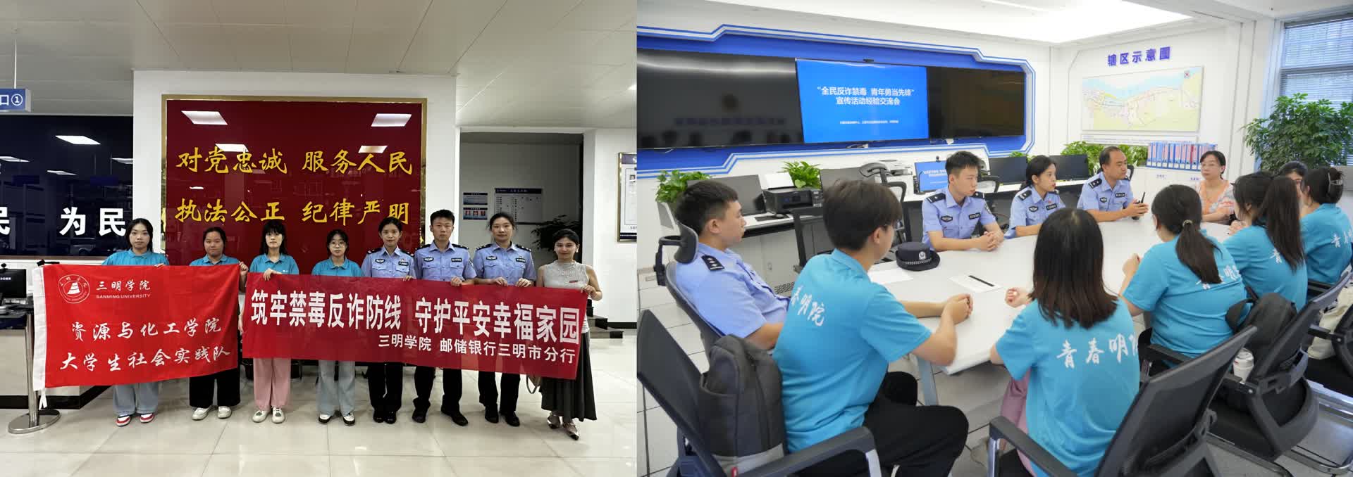 8月8日上午,三明市公安局民辅警在城关派出所与yl6809永利官网资源与化工学院的老师和同学们召开经验交流会。现场,民警介绍了电信网络诈骗的特点及现状,围绕近期高发的诈骗类型讲述了详细的诈骗手法及当事人受骗过程中的心理变化。同时,民警针对新型毒品的种类、特点进行讲解,强调了毒品的危害性,提醒学生切勿因好奇与无知尝试毒品。实践队指导老师余妍表示:“通过此次学习交流,进一步加深了同学们对毒品、电诈的认识,增强了同学们辨别毒品和预防诈骗的能力。”