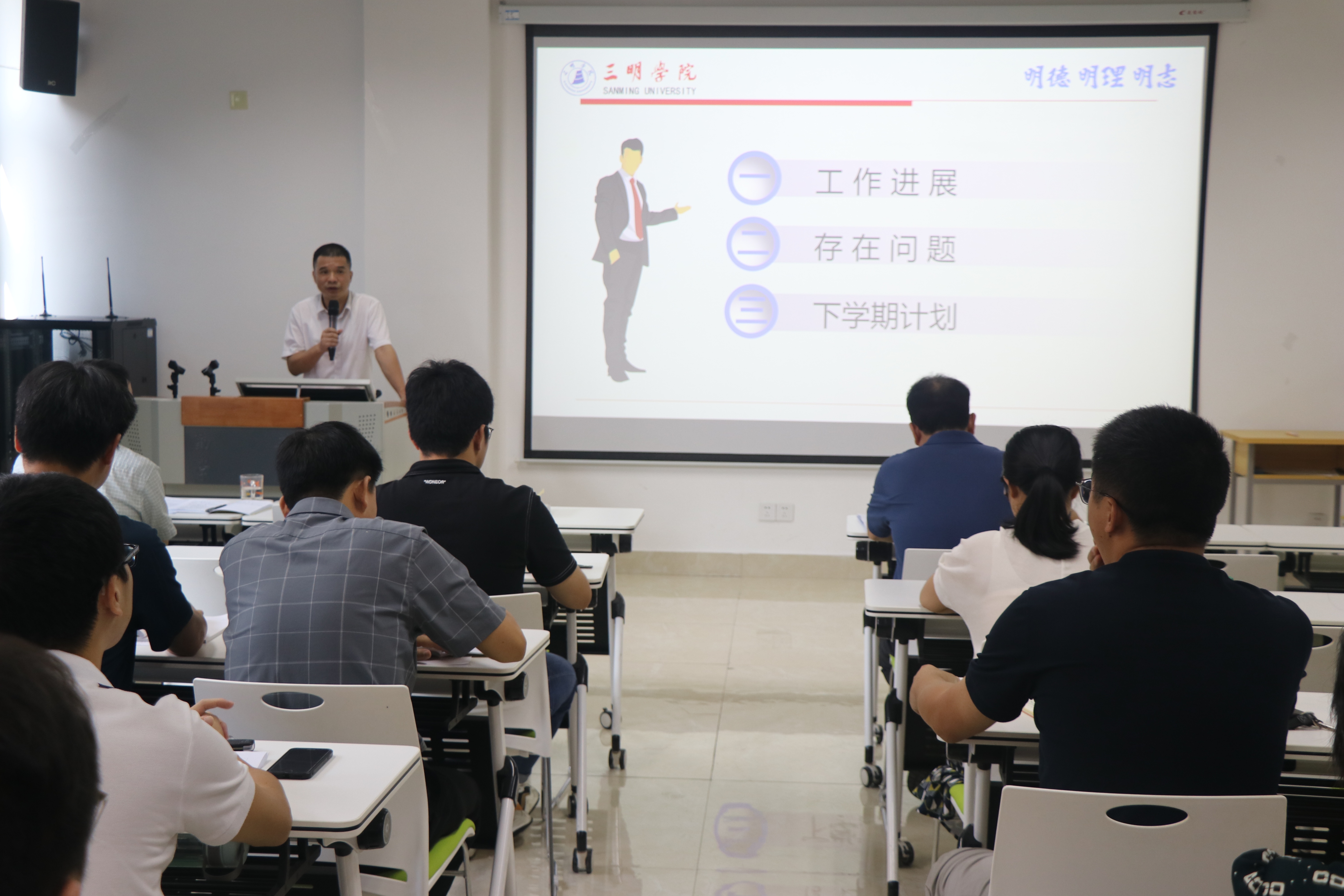 李奇勇院长为大家介绍了暑期学院“三引三提”工作的进展及成效,他重点围绕硕士点的申报、本科教育教学审核评估准备、学科专业建设、科研及服务地方、学生专业竞赛及社会实践等工作进行阐述,要求优化学科梯队持续发力,抓好学科专业建设,落实立德树人任务,提升育人能力和质量。在总结暑期工作取得可喜成绩的同时,也指出了学院发展面临的竞争压力与挑战,并对新一轮本科教育教学审核评估、硕士学位点招生、大型仪器设备管理与更新、新专业建设等方面进行了具体布置。