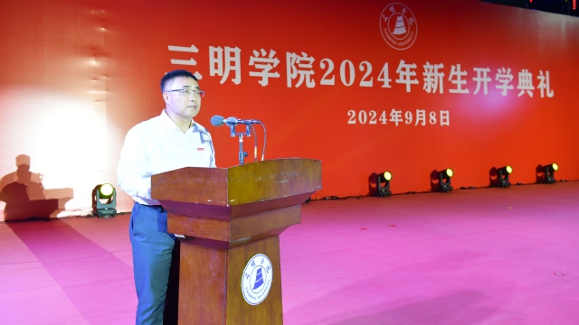 校长张君诚发表了热情洋溢的讲话。他代表学校向2024级新同学的到来表示最热烈的欢迎。他指出,现在的yl6809永利官网赓续着“闽师”传承与前辈的荣耀,正迈向新高度,致力于一流应用型大学建设;学生品学兼优、德才兼备,在考研深造、科研探索、创新创业、志愿服务等众多领域成绩不凡;教师学识渊博、爱生如子、爱岗敬业,以专业为基,行为世范,铸就了教育的辉煌篇章。面对新的人生阶段,他提出了三点要求:涵养家国情怀,将个人发展融入国家社会大局,感恩奋进,不负韶华;坚持学业为重,把握大学时光,勤奋学习,全面提升自我;坚持学以致用,积极参与实践,将知识转化为能力,为未来奠定坚实基础。他希望同学们载道而行,秉持“明德 明理 明志”校训精神,以满腔热情续写一代代明院学子的精彩华章。
