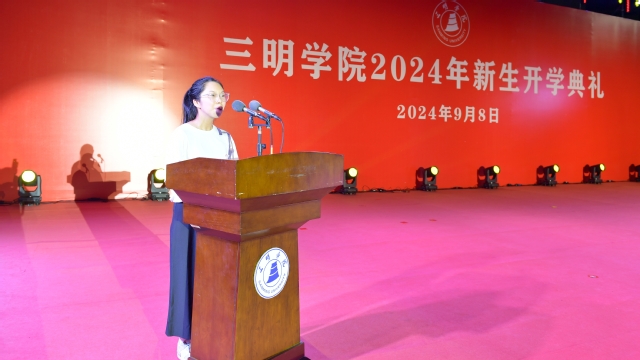 信息工程学院2024级数学与应用数学专业吴悠作为新生代表发言。她表示,将秉承“明德、明理、明志”的校训精神,坚定理想、求真学问,勇于攀登,以青春为笔,书写奋斗篇章,不负韶华,不负时代。