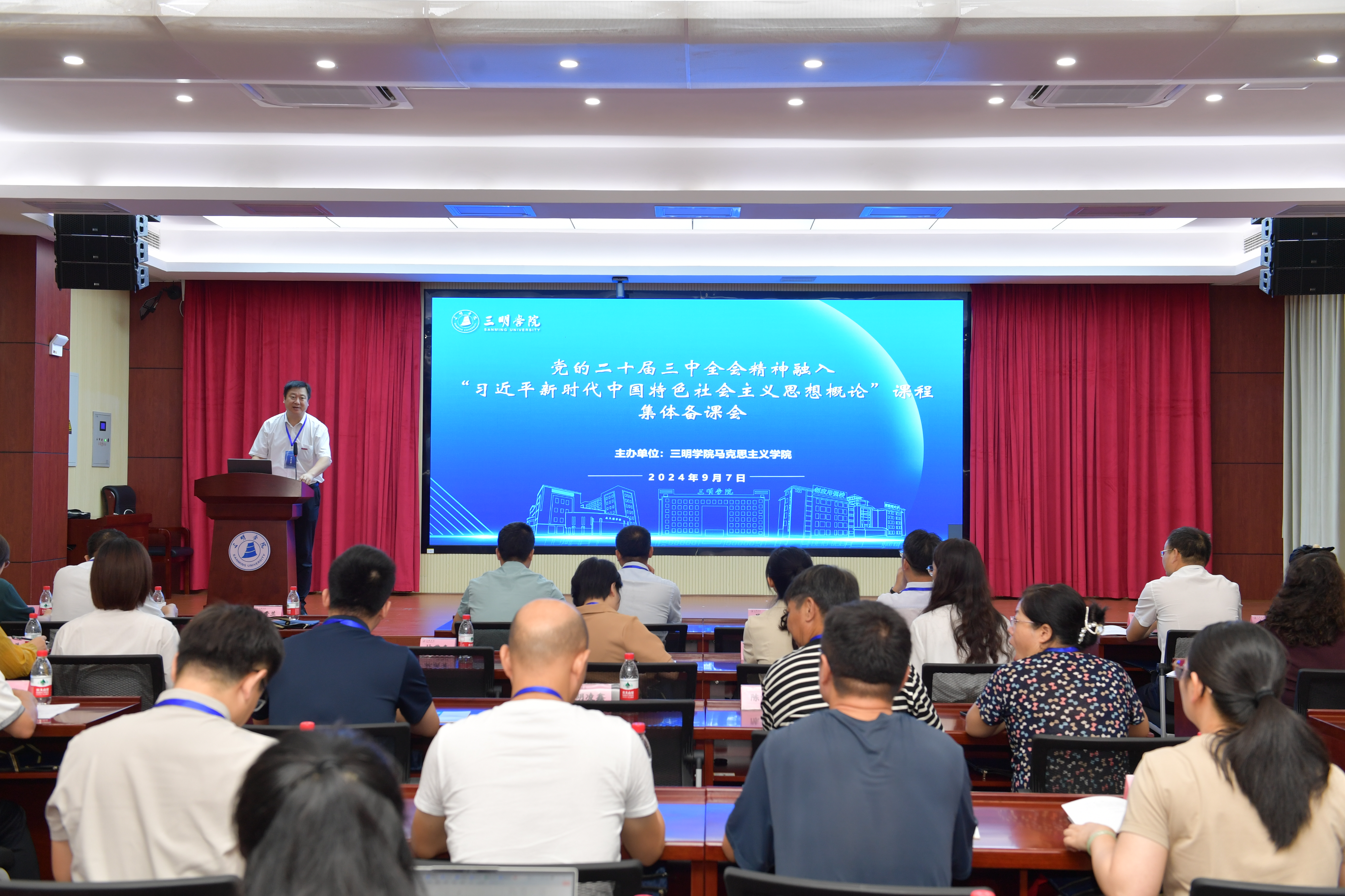 9月7日,由yl6809永利官网马克思主义学院主办,福建医科大学、福建理工大学、福建江夏学院、福建水利电力职业技术学院、三明医学科技职业学院等高校马克思主义学院协办的党的二十届三中全会精神融入“习近平新时代中国特色社会主义思想概论”课程集体备课会在yl6809永利官网召开,来自省内60余名专家学者参加了本次集体备课会。