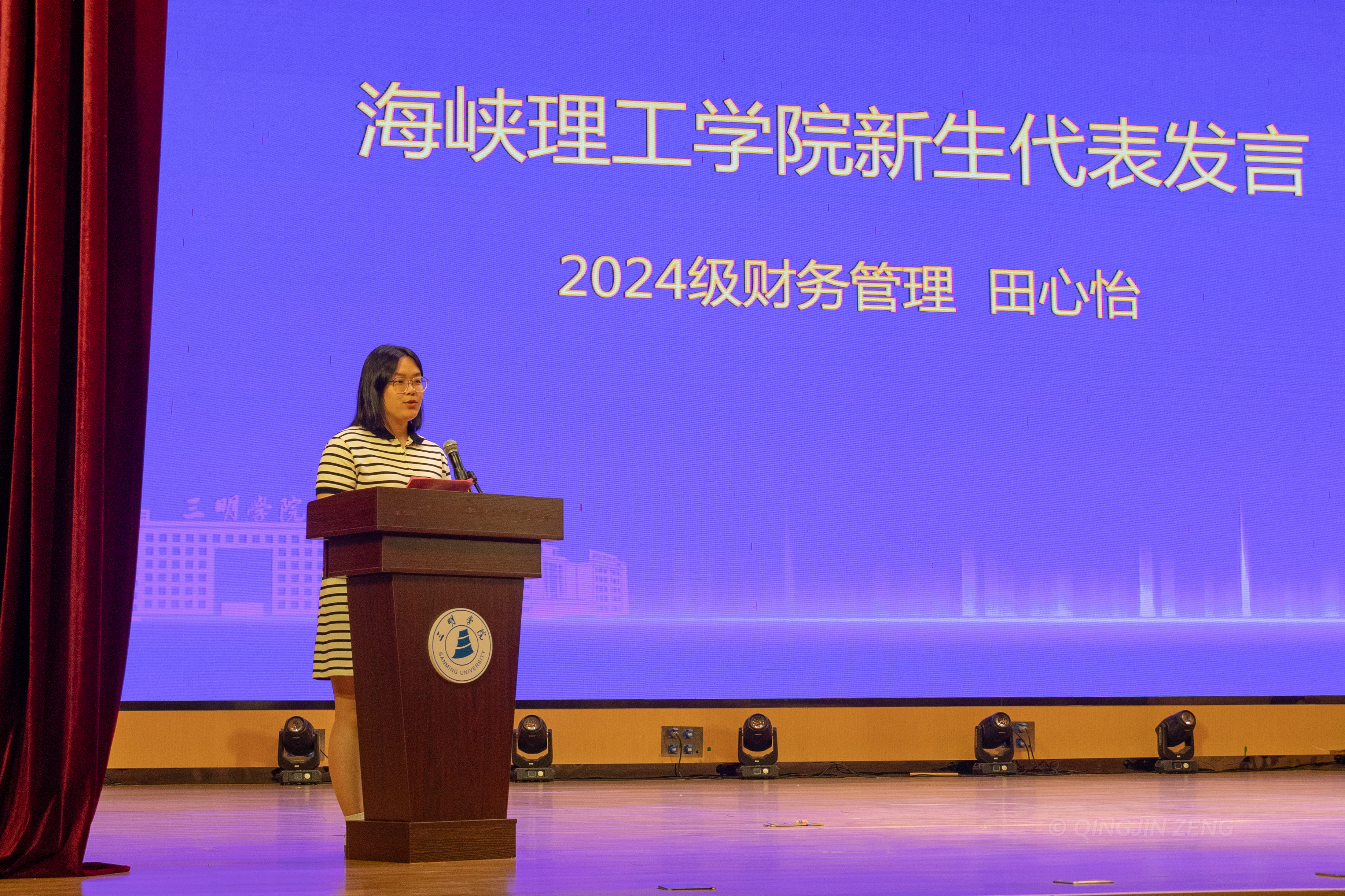2024级财务管理专业田心怡作为新生代表发言:她表示大学生一是有身挑时代大任,心怀家国天下的高度、二是有时刻保持积极、乐观、向上的态度、三是有相互尊重、相互理解、相互包容、相互帮助、热爱生活的温度。老生代表院团委副书记黄娜冰以明德修身、明理探道、明志凌云,鼓励新生以梦为马,不负韶华,让梦想的航船乘风破浪,稳健前行。