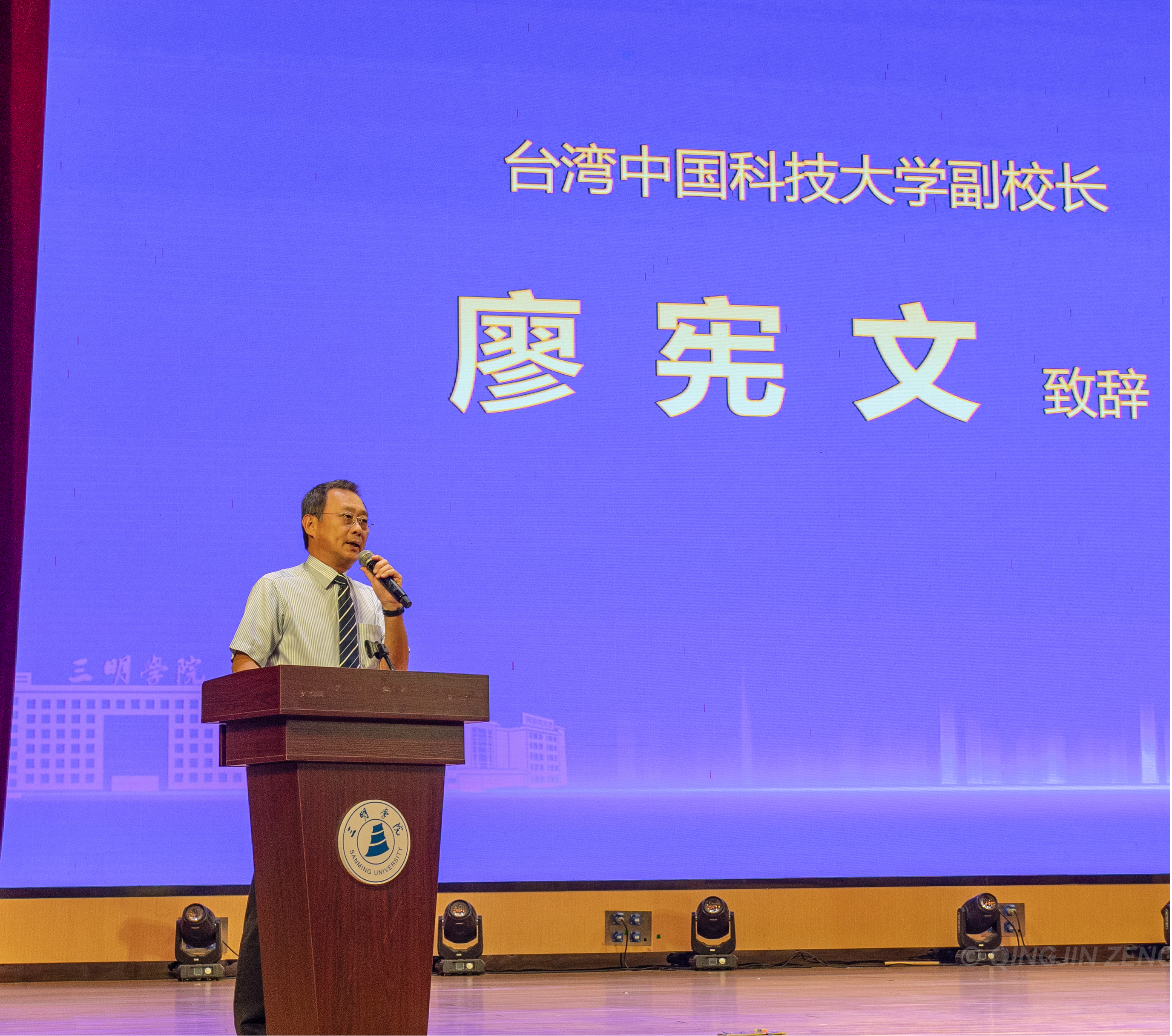 台湾中国科技大学副校长廖宪文在致辞中表示:大学生应珍惜时光,加强专业学习和体能训练,积极参加社团活动不断提升综合素质能力。台湾岭东科技大学陈健文处长表示:同学们要勤奋学习,克服困难,学会与人相处,培养团队合作精神和良好的沟通能力。