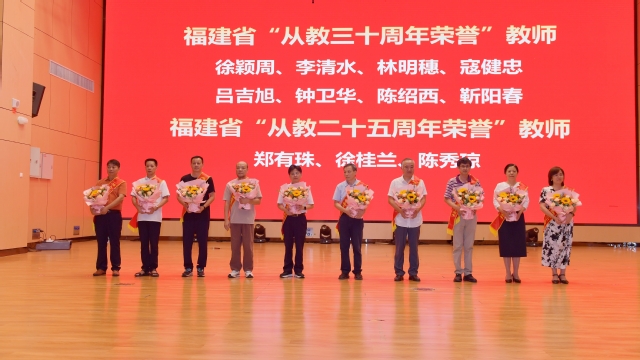 会上,举行了新教师入职、退休教师荣休仪式,表彰了获得福建省“从教三十周年荣誉”“从教二十五周年荣誉”教师,市优秀教师、师德标兵,一年来获得校级以上各类成果、荣誉的个人与团队,以及第二届“我心目中的好老师”。