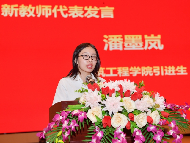 哈尔滨工业大学引进生、建筑工程学院教师潘墨岚作为新教师代表发言。她表示,今后将秉持勤学笃行、求是创新的躬耕态度,用心耕耘、用爱浇灌,做学生成长路上的引路人,为学校建设地方一流应用型大学贡献自己的力量。