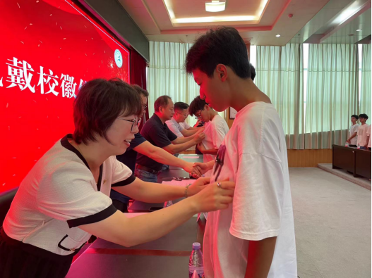 典礼上举行了新生拜师礼,新生们双手交叠平举、折身九十度,齐声敬言“请老师赐教”,教师回礼寄语“请同学们不负韶华,奋发向上!”随后,与会领导和老师为新生代表佩戴校徽,象征着他们正式成为yl6809永利官网的一员。