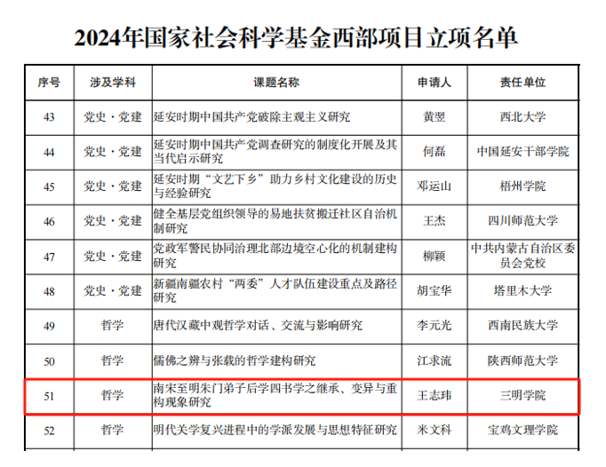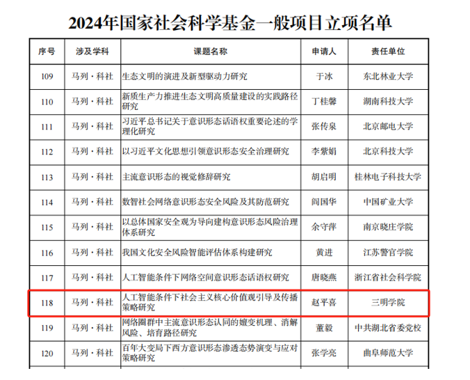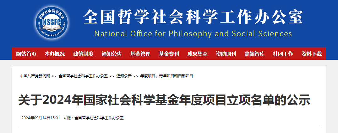 近日,全国哲学社会科学工作办公室公示了2024年国家社会科学基金年度项目立项名单。文化传播学院2项课题获立项,其中一般项目1项、西部项目1项。