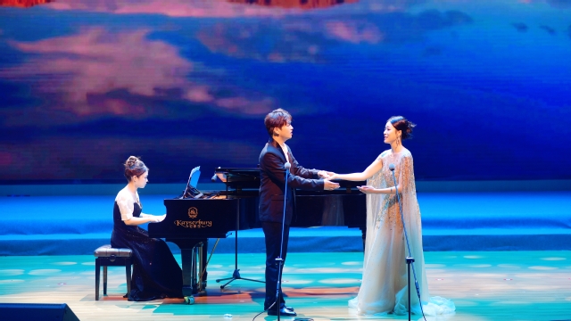 随后,经典中国声乐艺术歌曲《两地曲》与《祖国慈祥的母亲》让在场观众重温了历史长河中的重要时刻,感受到对亲人的思念以及对祖国的深切热爱。紧接着,《我怎样去爱你》与《是你一直想着我》等现代爱国主义音乐作品则以新颖的表现手法展现了新时代青年对祖国的情怀及人民群众对党的忠诚拥护。
