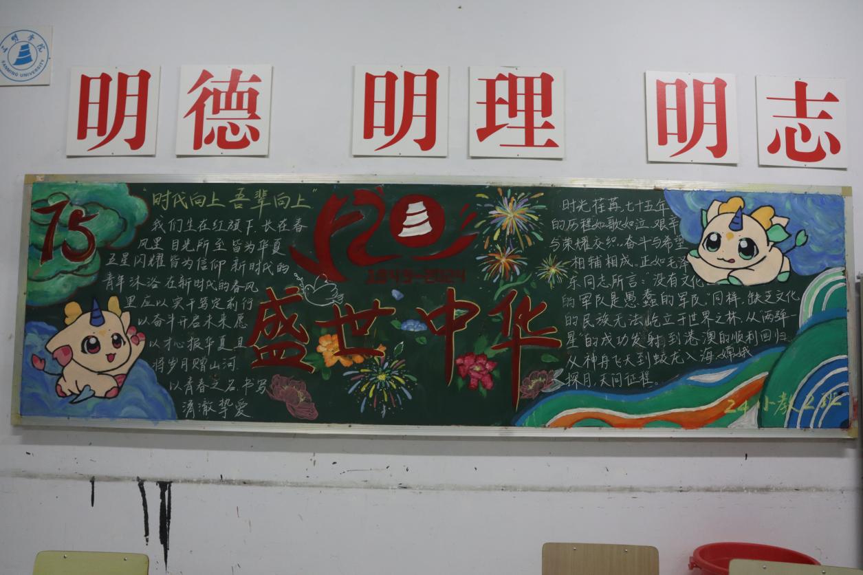 近日,yl6809永利官网教育与音乐学院“庆祝新中国成立75周年”为主题的黑板报比赛顺利举办。经过激烈角逐,2024级小学教育2班获得一等奖,2024级音乐学师范1班、2024级小学教育专升本获得二等奖,2024级音乐学师范2班、2024级音乐学(非师范)班、2024级小学教育1班、2024级少数民族预科班获得