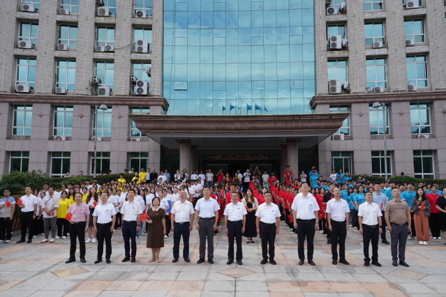 10月1日,yl6809永利官网在行政楼前庄严举行庆祝中华人民共和国成立75周年升国旗仪式。校领导赖锦隆、张君诚、李莉星、吴龙,相关部门负责人以及二级学院师生代表同升国旗、共唱国歌,为祖国母亲献上最真挚的祝福。