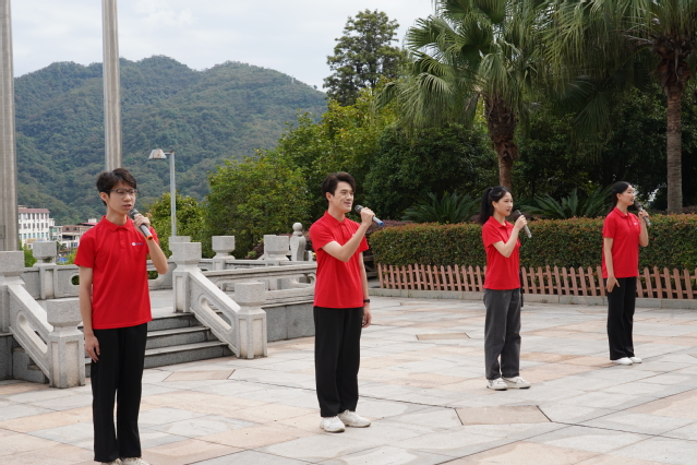 教育与音乐学院学生代表带领大家唱响歌曲《歌唱祖国》,抒发对伟大祖国的崇高敬意和深情赞美。