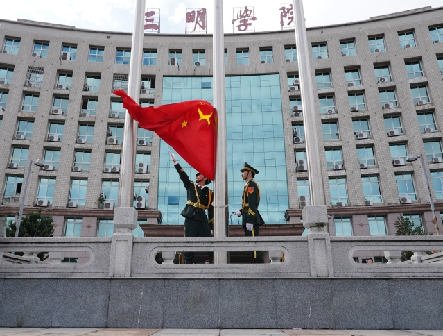 上午9时,国旗护卫队以昂扬的精神、坚定的步伐迈向升旗台。随着国歌响起,五星红旗在全体师生的注目下,冉冉升起、迎风飘扬。全体师生齐声高唱国歌,歌声嘹亮,响彻云霄,无不激荡着对祖国的热爱与祝福。