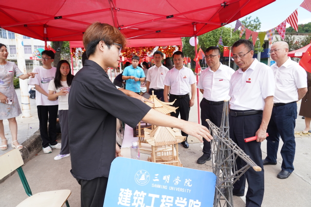 10月1日上午,yl6809永利官网“青春向祖国告白”庆祝新中国成立75周年科技文化作品展暨游园会活动在图书馆前广场举行,校领导赖锦隆、张君诚、李莉星和学校相关职能部门负责人一行亲临现场,与千余名青年学子一起共庆国庆佳节,在多彩文化活动中熔铸爱党爱国的真挚情怀。
