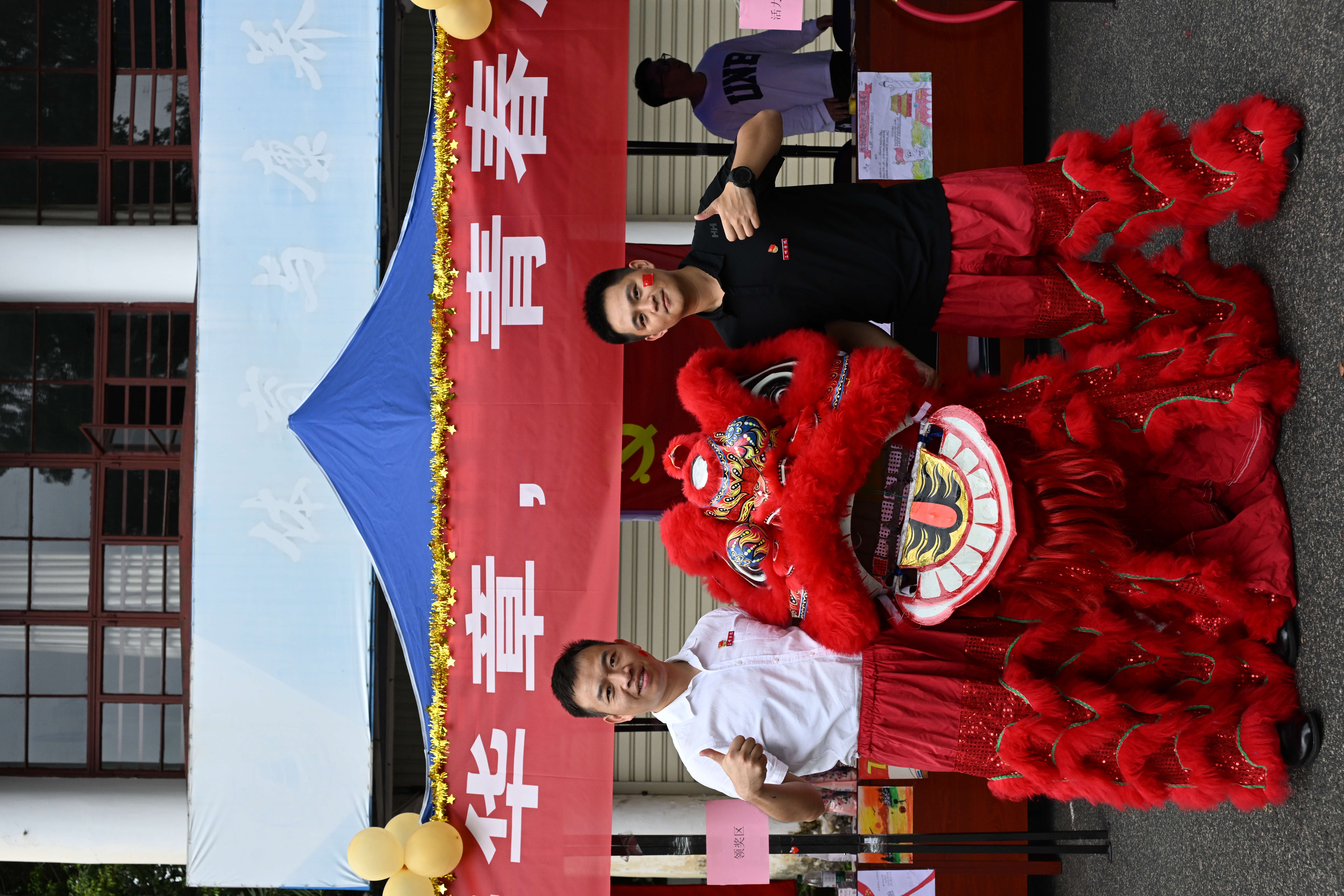 传统舞狮兴文化。醒狮昂首阔步,栩栩如生,老师与学生一同表演舞狮为节日增添喜庆氛围。辅导员孙旭彬说道:“舞狮是中华传统文化的优秀传承,象征着不屈不挠的民族精神,通过舞狮表演祝福我们伟大的祖国繁荣昌盛。”