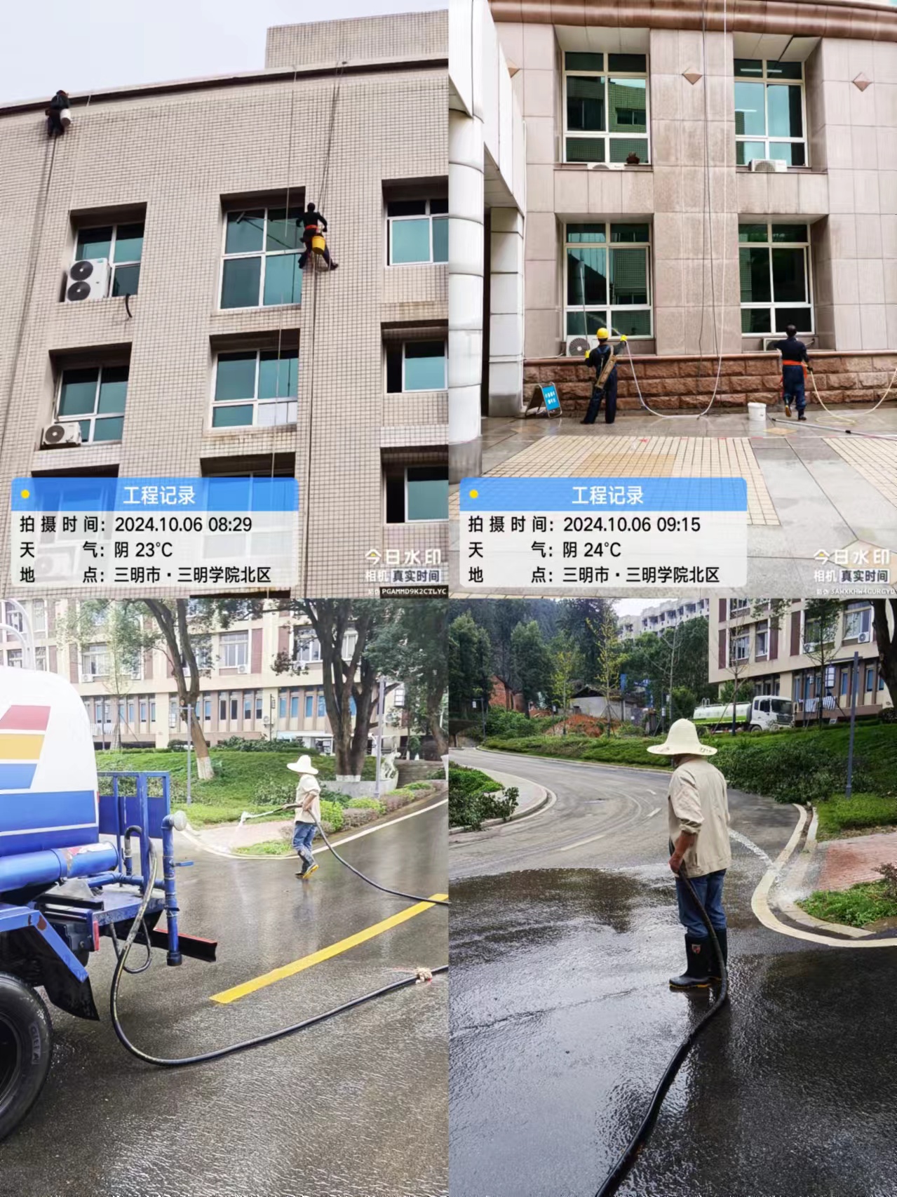 国庆期间,物业与水电科室积极行动,全面维护校园环境设施。他们组织专业人员对博学楼、厚德楼等教学场所进行了细致的维修工作,有效解决了漏水掉灰等问题。同时,对路面破损、行知天桥顶棚破损问题,实施紧急修复。此外,还成功处理了4处水管故障,清理枯木,优化绿化景观,包括修剪树木与病虫害防治,并对道路及外墙进行了全面清洗。这些工作不仅美化了校园环境,更为本科审核评估工作提供了良好的外部环境保障。