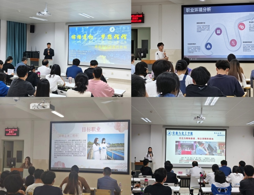 资源与化工学院于10月9日在工科楼A403会议室、B402教室举办第八届大学生职业规划大赛,院党委书记赖文忠教授、党委副书记及各系各专业老师出席本次活动并担任评委。
