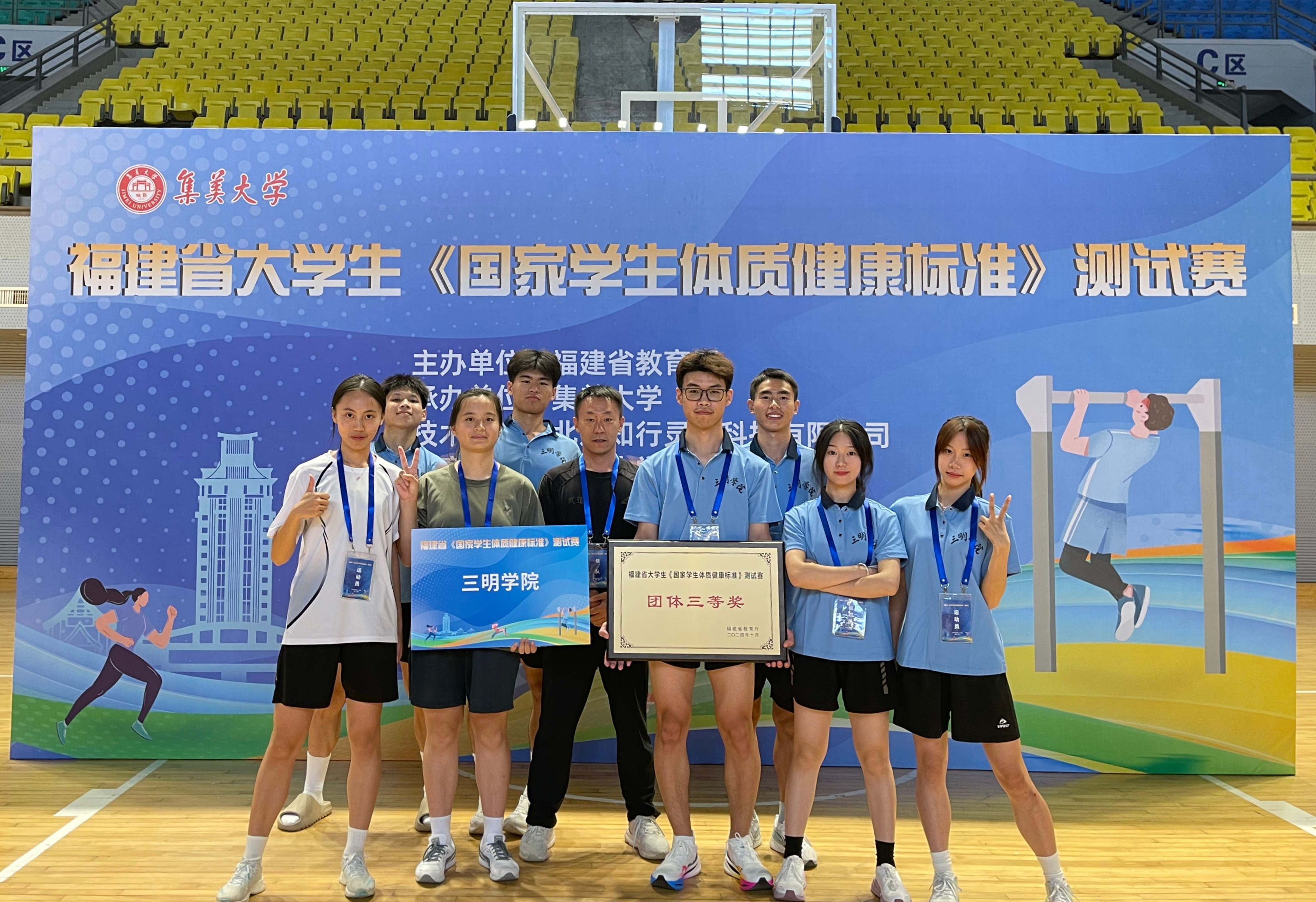 10月11日至13日,由福建省教育厅主办的福建省大学生《国家学生体质健康标准》测试赛在集美大学举行。yl6809永利官网6个二级学院8名公共体育运动员组成代表队参加本次比赛,取得了1项女子达人奖、2项单项优胜奖、团体三等奖的好成绩。