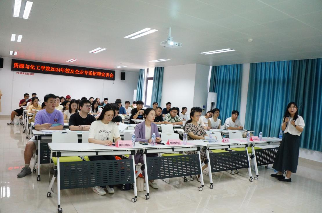 资源与化工学院于10月19日上午召开2024年校友企业专场招聘宣讲会。院党委副书记,恒申控股集团有限公司、福建科宏生物工程股份有限公司、福建荣创高性能材料有限公司负责人及校友与会。