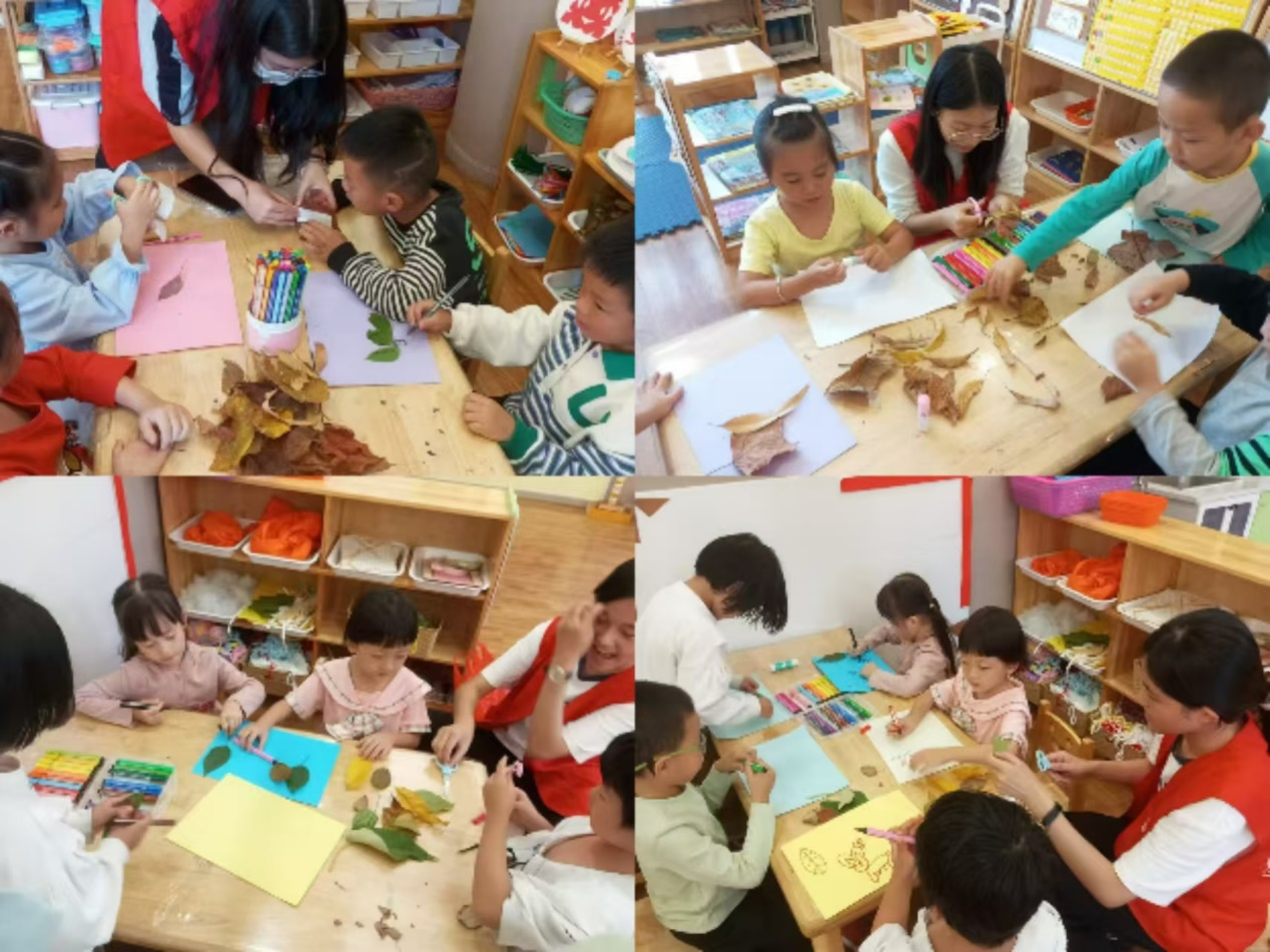 此次活动在制作干花落叶的手工作品中展开,小朋友们在志愿者的帮助和陪伴下将所思所想外化于形、跃然于纸上,在其中领略到了大自然的神奇魅力,体会到了实践的快乐。