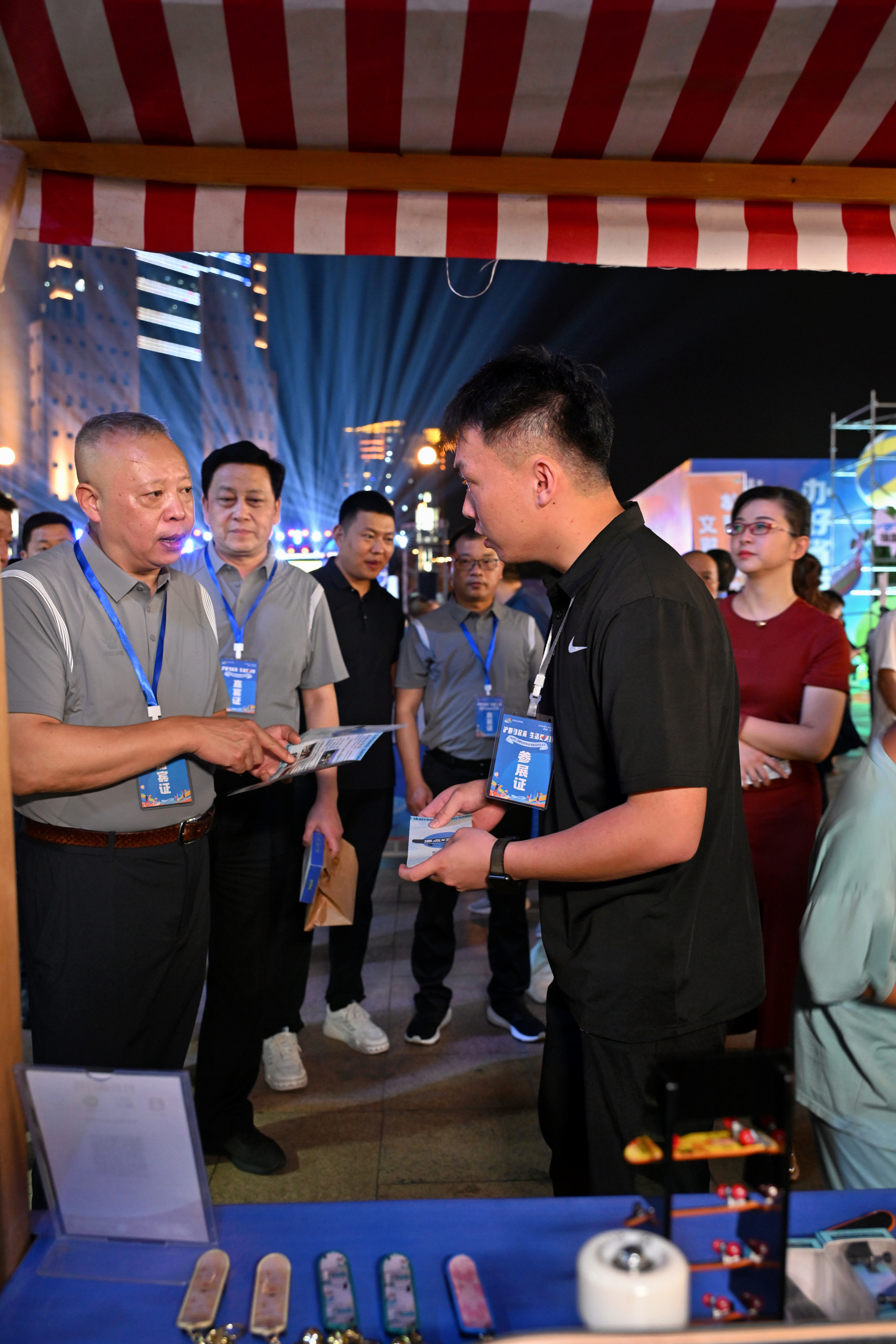 开幕式当晚,活动指导及主办单位领导一行亲临公司展销摊位,高度评价了公司的滑板业务,并对公司未来的发展寄予厚望,提出建设性意见,鼓励公司继续努力,持续推广滑板运动。