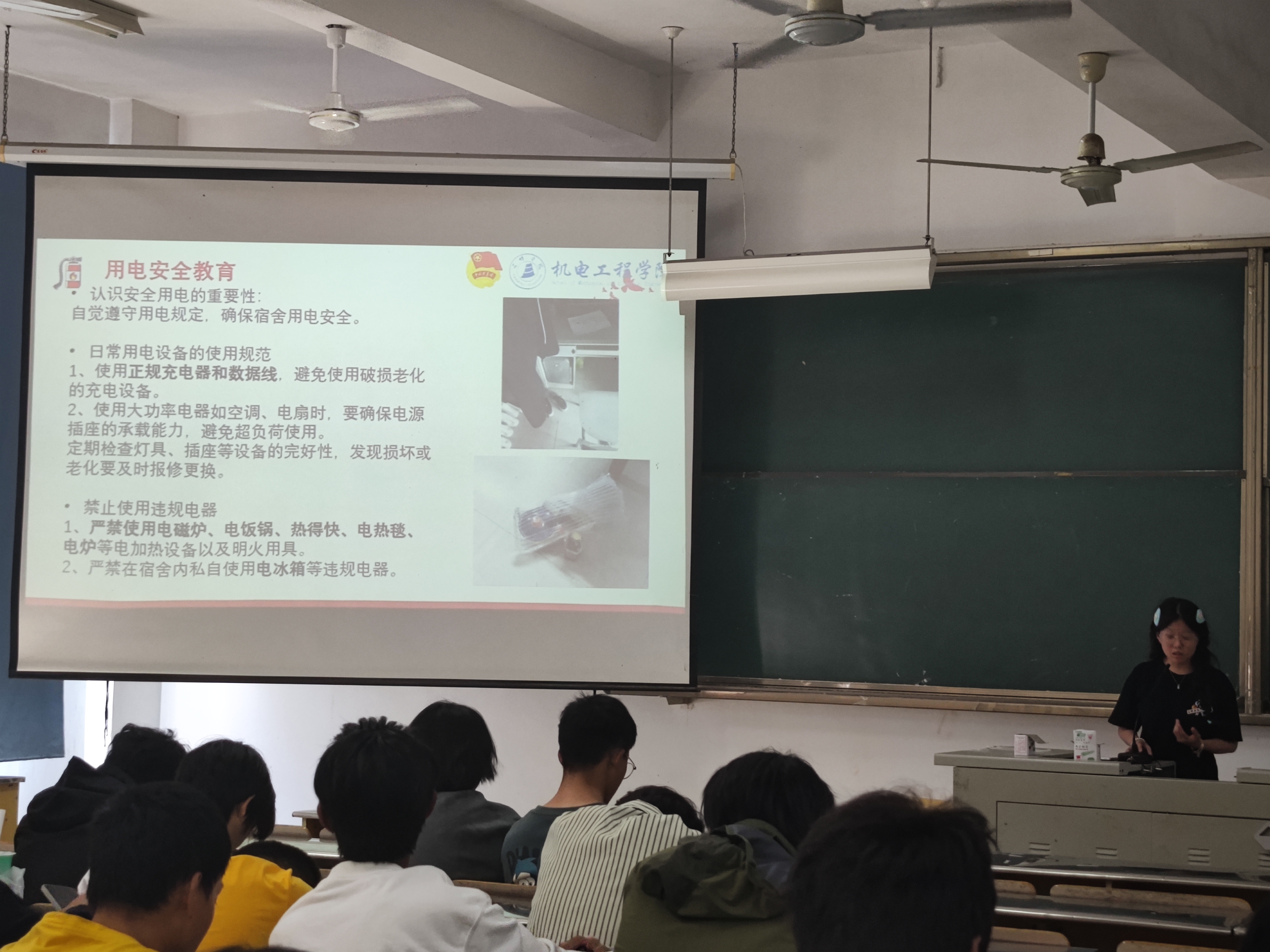 近日,机电工程学院开展“一站式”学生社区2024级新生宿舍长安全教育培训会议。