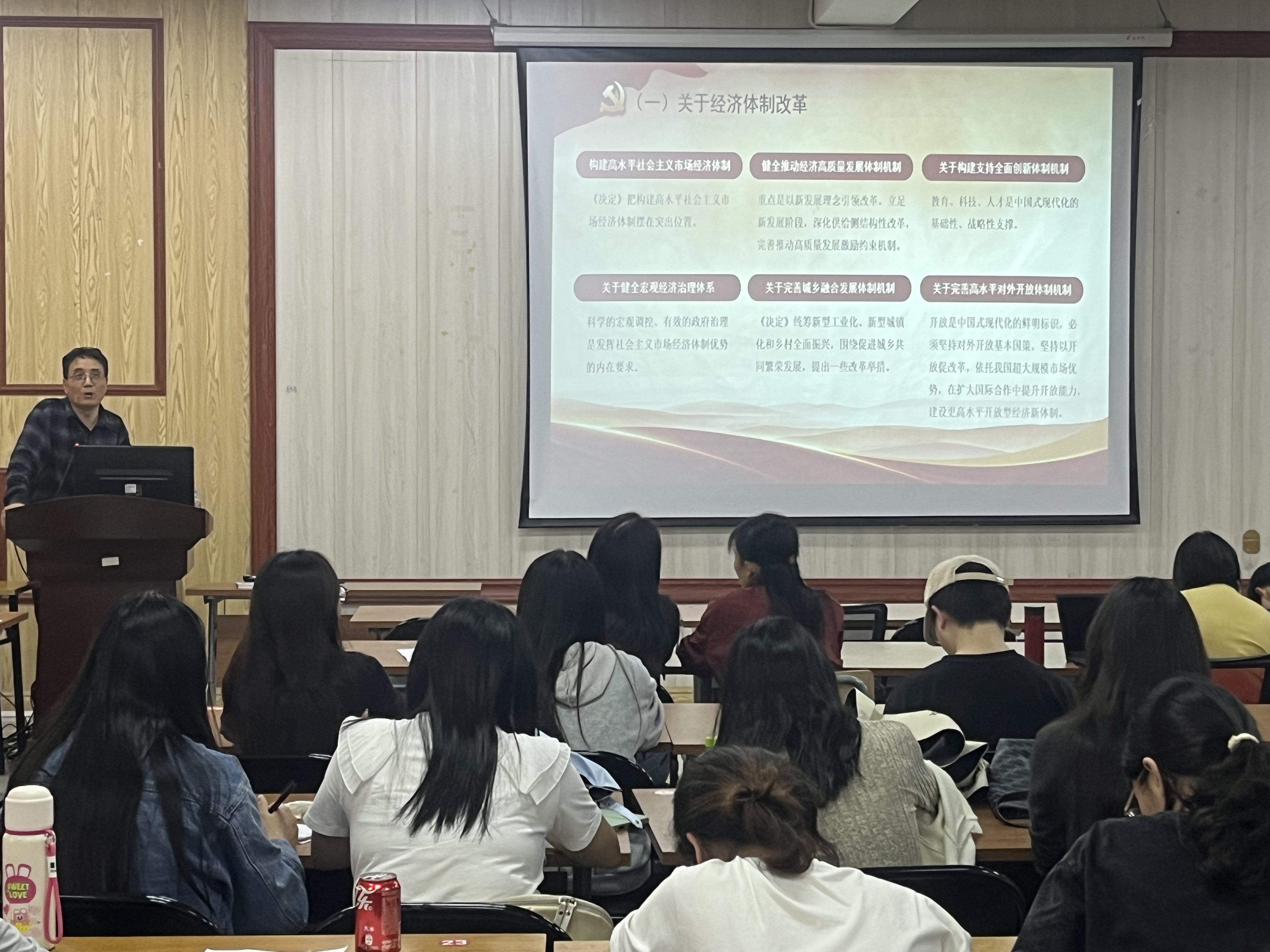 为深入学习贯彻党的二十届三中全会精神,10月30日经济与管理学院特邀马克思主义学院范连生教授在厚德楼304开展《学习贯彻党的二十届三中全会精神》主题宣讲活动,经济与管理学院全体党员参与。