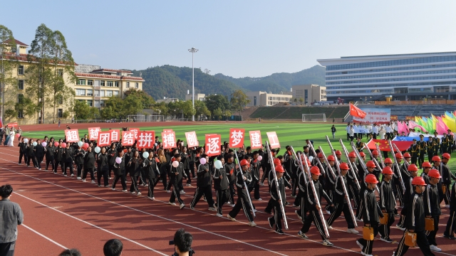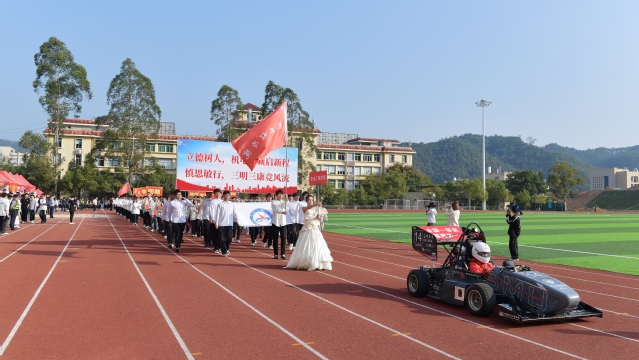 在庄严的升旗仪式后,校党委委员、副校长吴龙致开幕词。他表示,近年来,学校积极推进体育教育教学改革,大力推动三明市国家体育消费试点城市建设,不断加大校园体育基础设施建设力度,学校体育工作呈现良好势头,师生开展体育运动氛围更加浓厚。此次运动会是学校大力推进阳光体育运动,打造健康校园的一项重要举措,也是对学校体育工作的一次大检阅,更是全体师生精神风貌的一次大展示。希望全体师生以本次运动会为契机,坚持体育锻炼,强健体魄,真正享受体育乐趣,实现终身受益。
