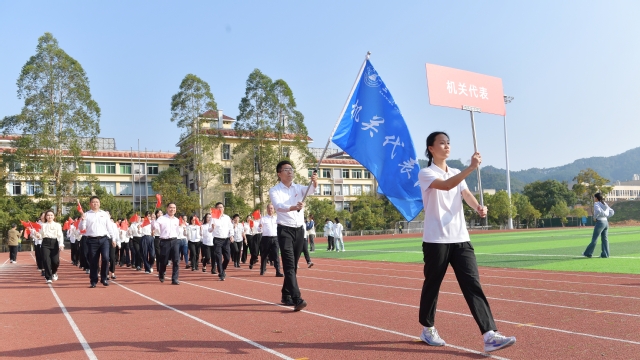 金风送爽,丹枫迎秋。11月6日上午,yl6809永利官网第十九届田径运动会在南区田径场顺利举行。校领导赖锦隆、廖景榕、李莉星、吴龙、林建伟,三明市卫生健康委员会党组成员、副主任何干晶,三明市体育局党组成员、副局长戴绍松出席开幕式。本届运动会组委会主任、校党委副书记李莉星主持开幕式。