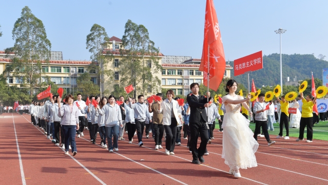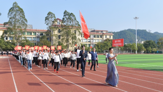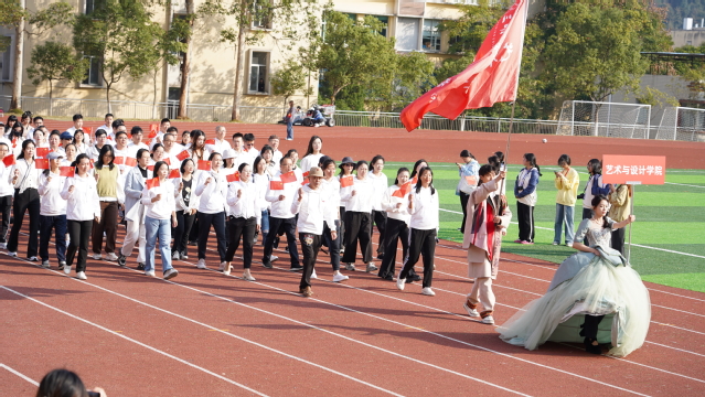学校第十九届田径运动会组委会全体成员,二级学院院长及师生代表参加开幕式。