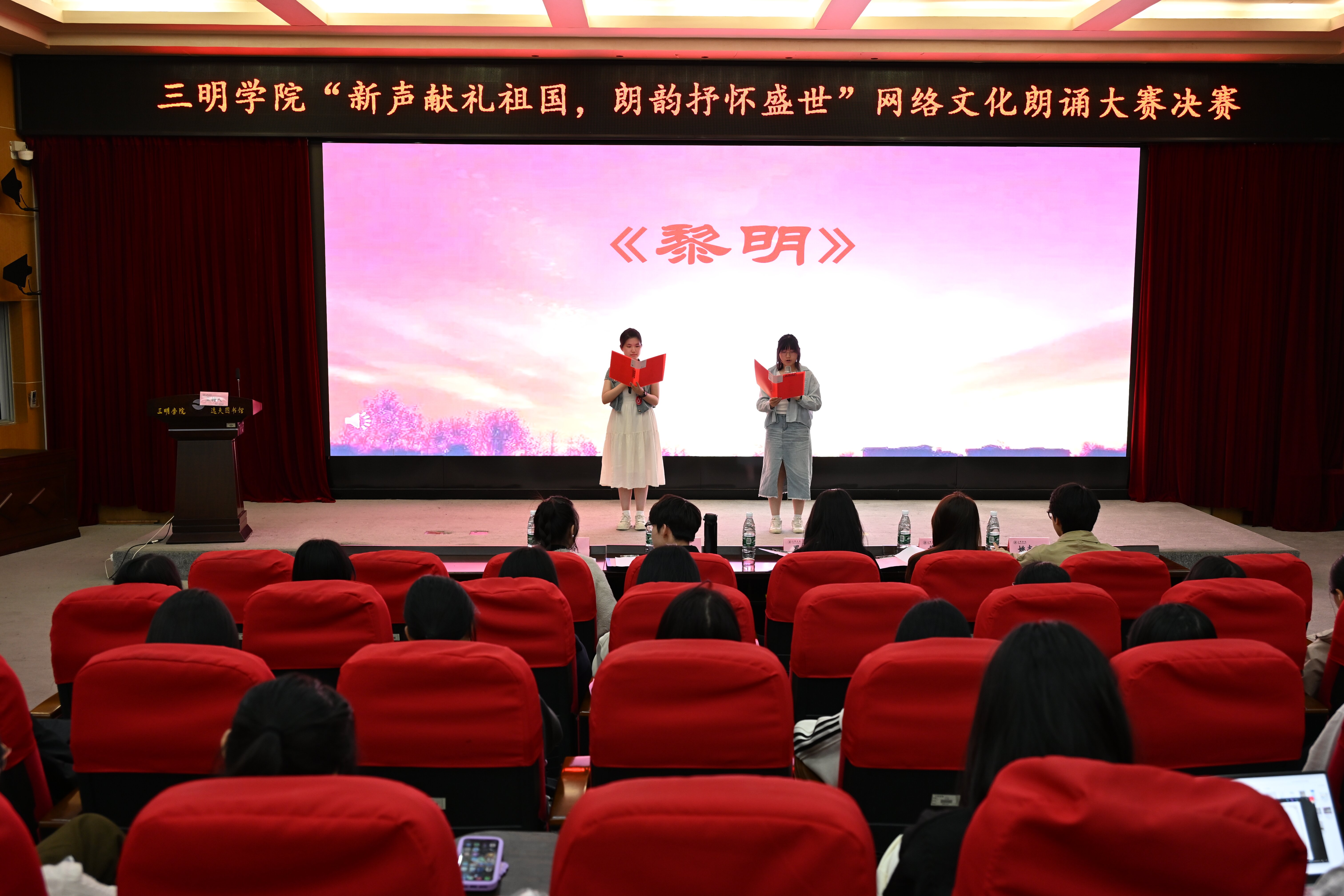 11月7日,一场为庆祝新中国成立七十五周年,激励青年赓续前行再奏华章,由yl6809永利官网学生处、共青团yl6809永利官网委员会主办,共青团yl6809永利官网文化传播学院委员会、yl6809永利官网荷花苑7A栋党支部、yl6809永利官网朗诵协会、yl6809永利官网播音与主持艺术专业学生党支部承办的“新生献礼祖国,朗韵抒怀盛世”网络文化朗诵大赛在图书馆报告厅开展。