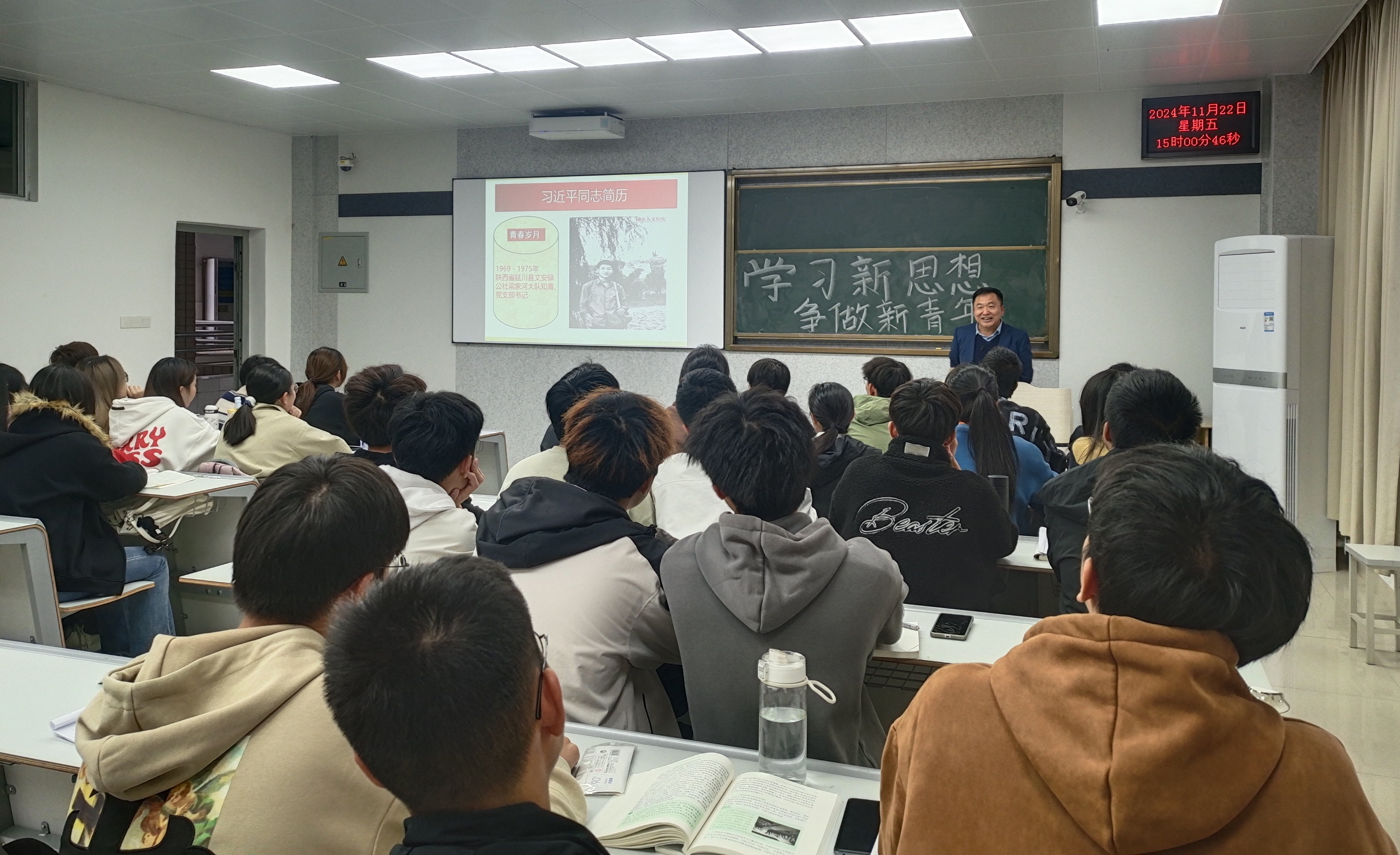 11月22日下午,上海大学马克思主义学院岳爱武教授应邀到博学楼201为我校学生作题为“以青春积淀理想:感悟青年习近平的成长密码”的专题讲座,马克思主义学院2024级思想政治教育、建筑工程学院2024级智能建造与智慧交通专业的学生参加。