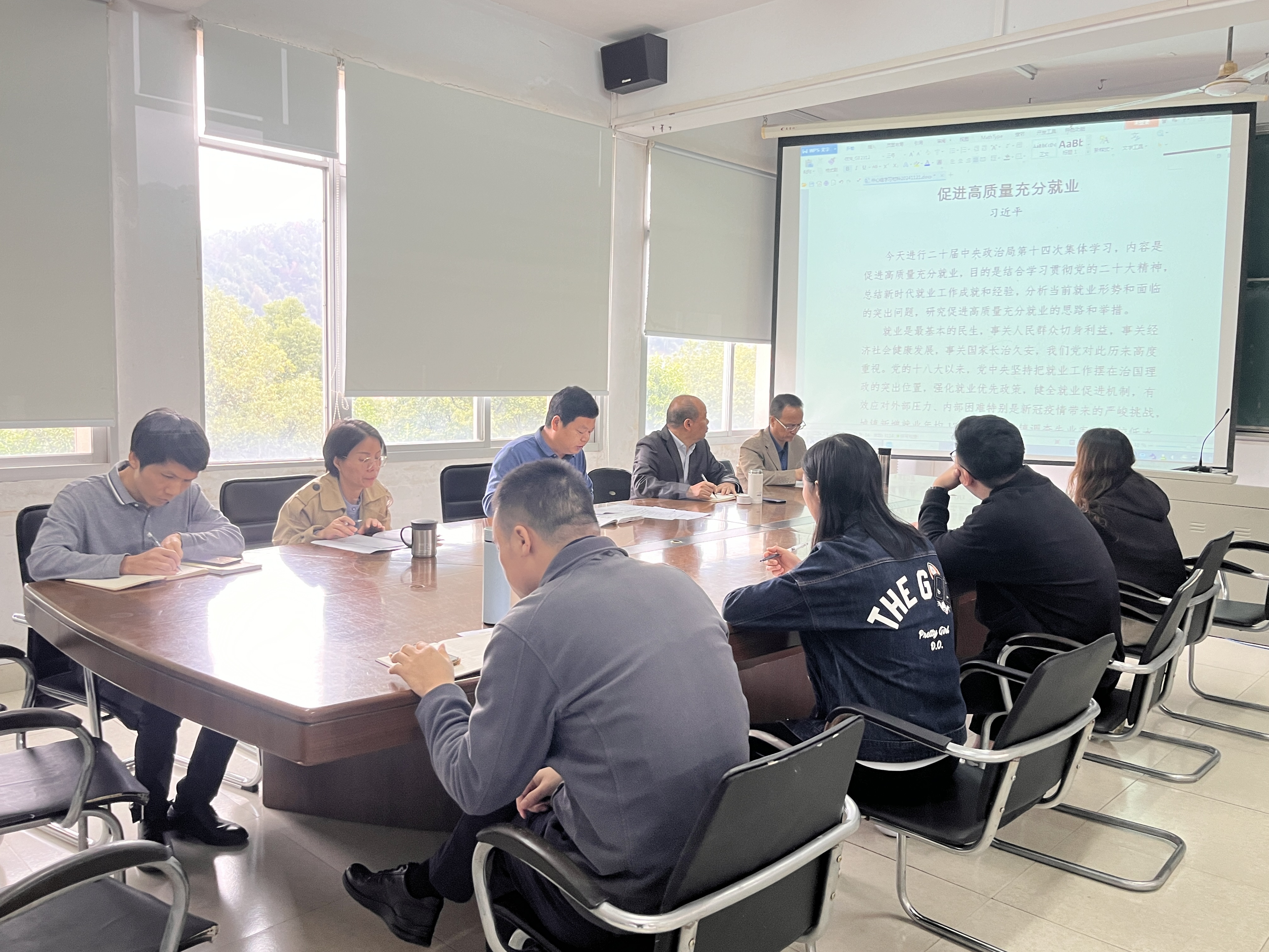 范桂英副书记以数据和案例的形式分析了学院2024届就业工作情况,针对各专业就业存在的问题和难点痛点分析原因,对2025届就业工作做了具体布置和安排。提出学工队伍要和教学系密切配合,加强对学生就业观念的教育与引导,挖掘各方资源开拓就业岗位。要及时开展就业材料核查,责任明确到人、落实到点,确保就业数据真实、准确、完整。