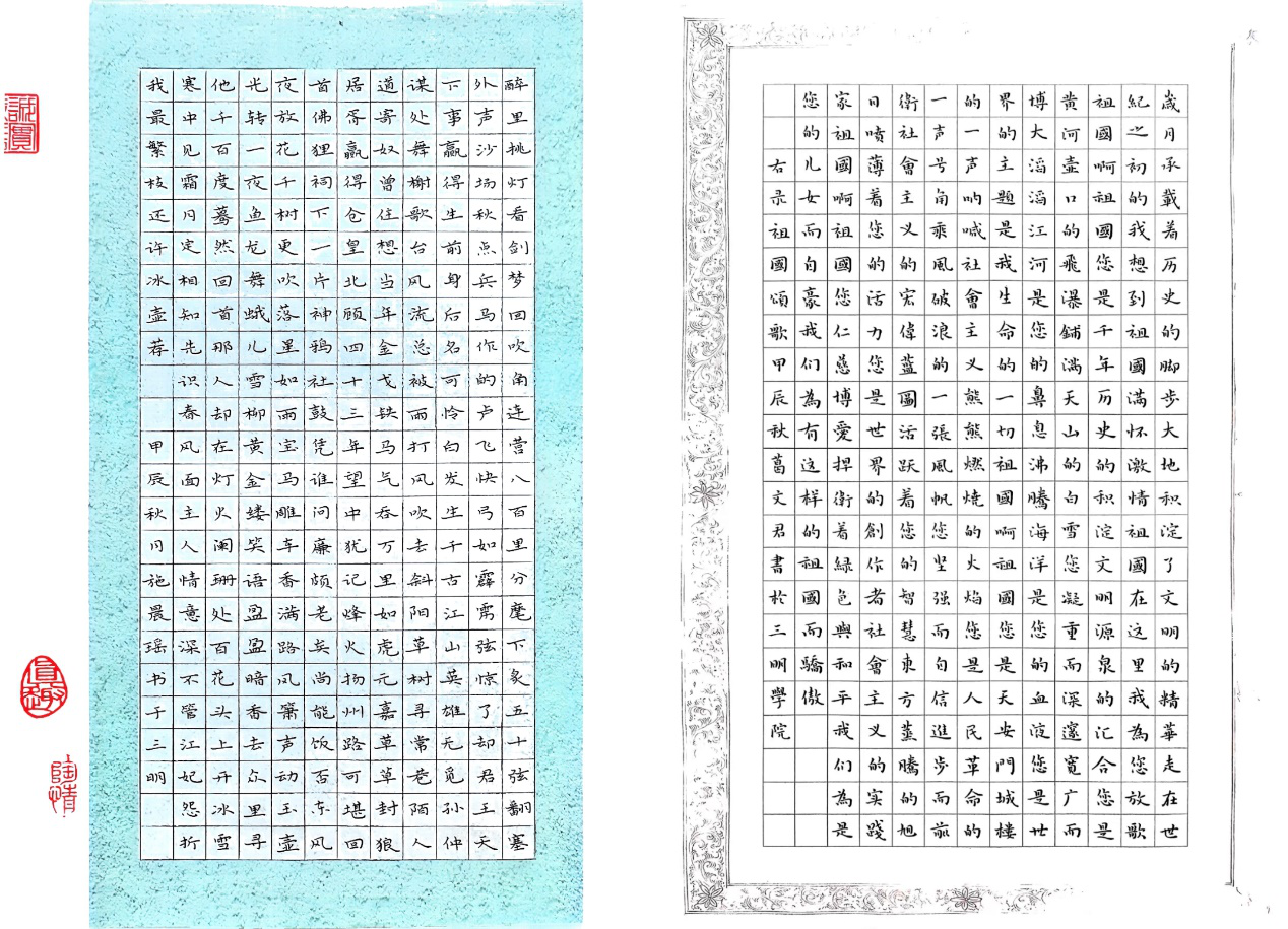 自9月初开赛以来,吸引了众多同学热情参与。此次活动将爱国之情、文化自信融入学生自主创新能力之中,共设置配音、三行诗创作、朗诵、书法与摄影宣传片五个主题赛道,共收到700余份来自各学院的参赛作品。活动通过多种形式的艺术表达,不仅展现了同学们的才华与热情,更深刻体现了对祖国的热爱与祝福,一笔一划间尽显中华文化的博大精深与风骨韵味。