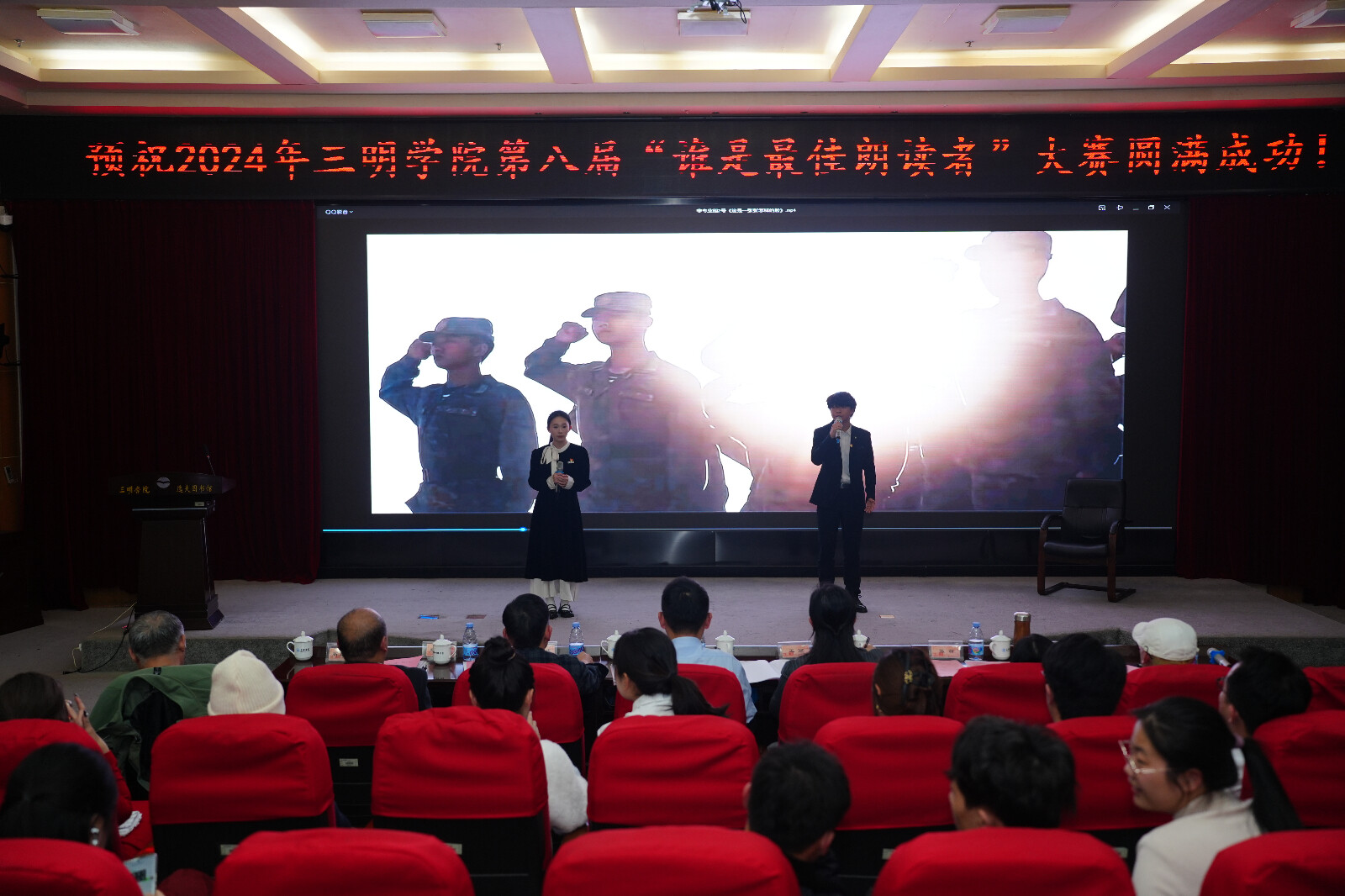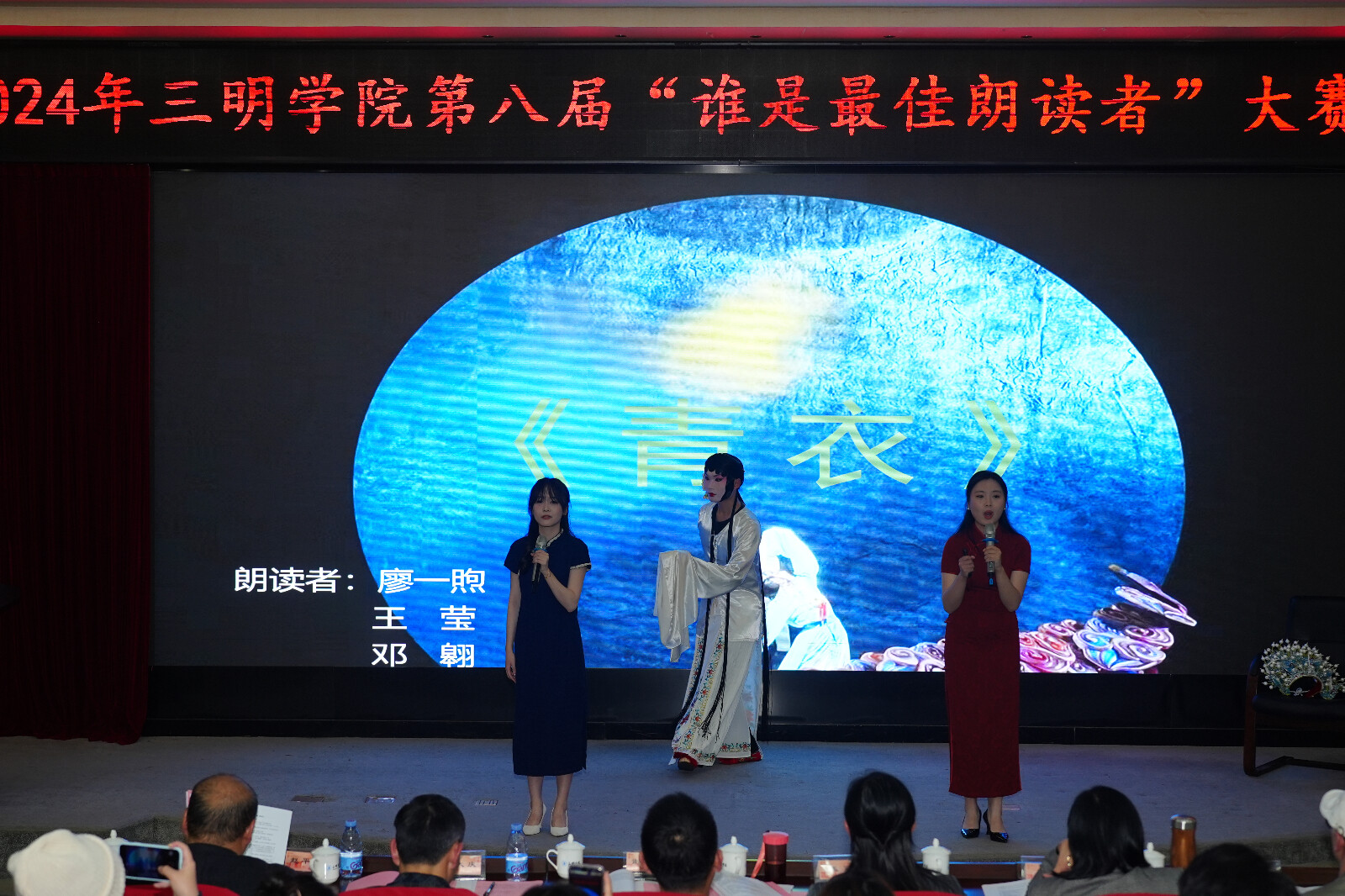 大赛分非专业组(除播音与主持专业外的所有在校生)、专业组(限播音与主持专业在校生参加)两个赛道,经过初赛自选篇目朗诵竞赛,选拔出前12名非专业组、前8名专业组项目进入决赛,决赛经历自选篇目和现场抽选《中华传统百部经典》片段朗诵两个环节竞赛综合排名,评选出“最佳朗读者”。决赛选手们精神抖擞,斗志昂扬,声情并茂,用一个个精彩的节目获得现场评委、观众们的热烈掌声。最终来自23级机械(专升本)王景琦、24级机械(专升本)沈国强二人组合自撰的《觉醒·白话》,通过演绎民国大家关于文言文与白话文对于传承中华文化优劣的论辨,带领读者直观地体验了中华语言之美,并凭借扎实的古文功底和精彩的演绎,荣获非专业组冠军。23级播音与主持专业2班的廖一煦、王莹、邓翱三人组合《青衣》,通过朗诵演绎京剧《奔月》成功演出背后演员的心路,凭借对文本的深刻理解、对人物形象的精准把控和出色的舞台呈现获得专业组冠军。