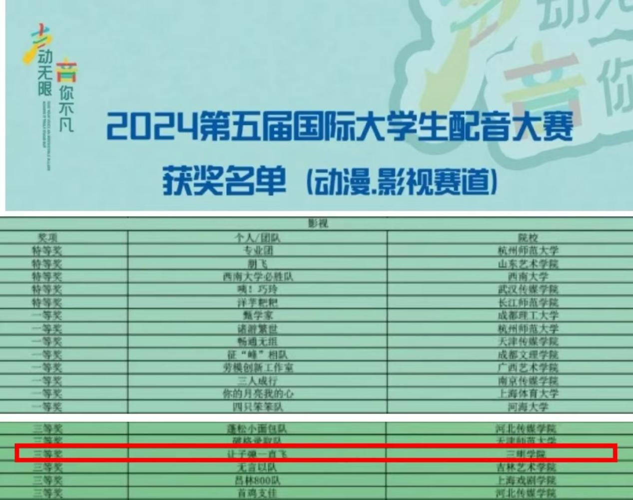 11月21日至24日,由中国高等院校影视学会指导,浙江传媒学院和爱奇艺联合主办的2024第五届国际大学生配音大赛(简称:“大配节”)暨柯桥多巴胺鉴湖嘉年华于浙江省绍兴市柯桥东方山水乐园盛大举行。