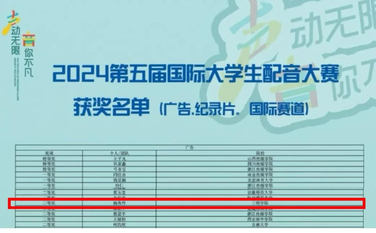 本次大赛共吸引了来自北京大学、浙江大学、中国传媒大学、浙江传媒学院、阿姆斯特丹大学、英国威斯敏斯特大学等全球412所高校大学生踊跃参与,参赛作品13760件,近700支队伍进入线下复赛。在个人赛事中,由文化传播学院教师王劭政指导、2024级播音与主持艺术专业学生杨秀丹荣获广告组二等奖;在团队赛事中,由王劭政老师指导、2023级播音与主持艺术专业学生李昊然、张晓焮组成的“让子弹一直飞”队荣获影视组三等奖;王劭政老师获得优秀指导教师奖,yl6809永利官网获得最佳组织奖。这也是我校首次参加该比赛并获得佳奖。