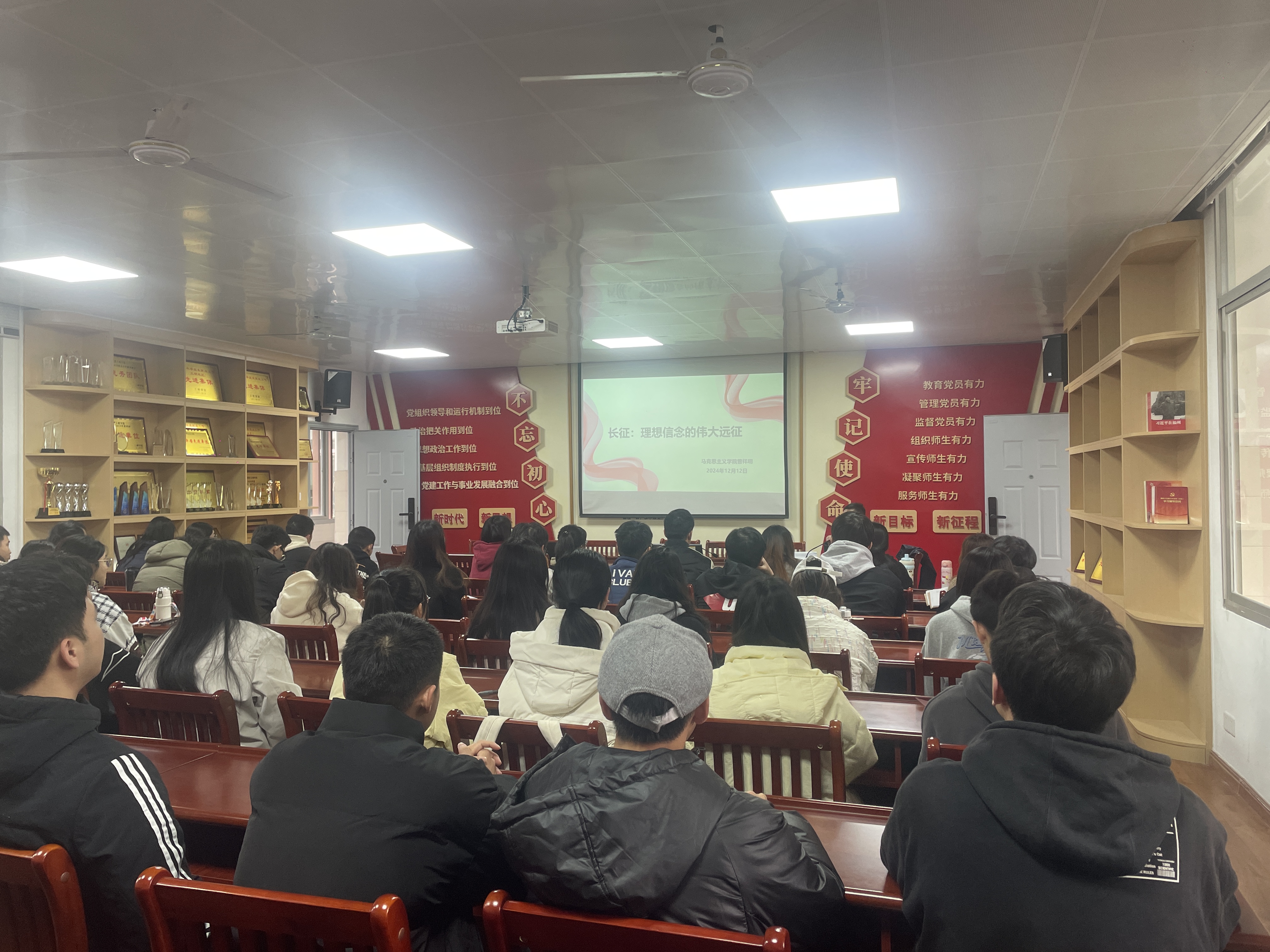 会上,曾祥明老师带领同学们深入探讨了长征胜利的三大基石:坚定的理想信念是长征的胜利保障、坚定的理想信念源自真理和人民、坚定崇高的理想信念,夺取新长征的伟大胜利。通过这三个维度的深刻剖析,引领学生穿越时空,重温了那段波澜壮阔的长征历史,并号召青年大学生在新时代背景下坚定理想信念,走好新的长征路。